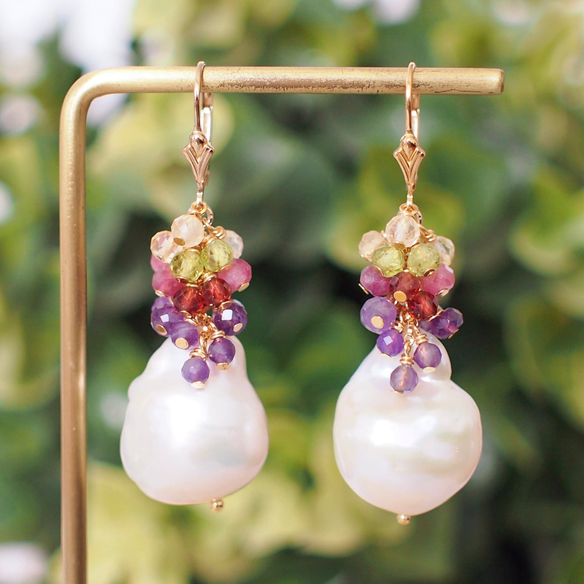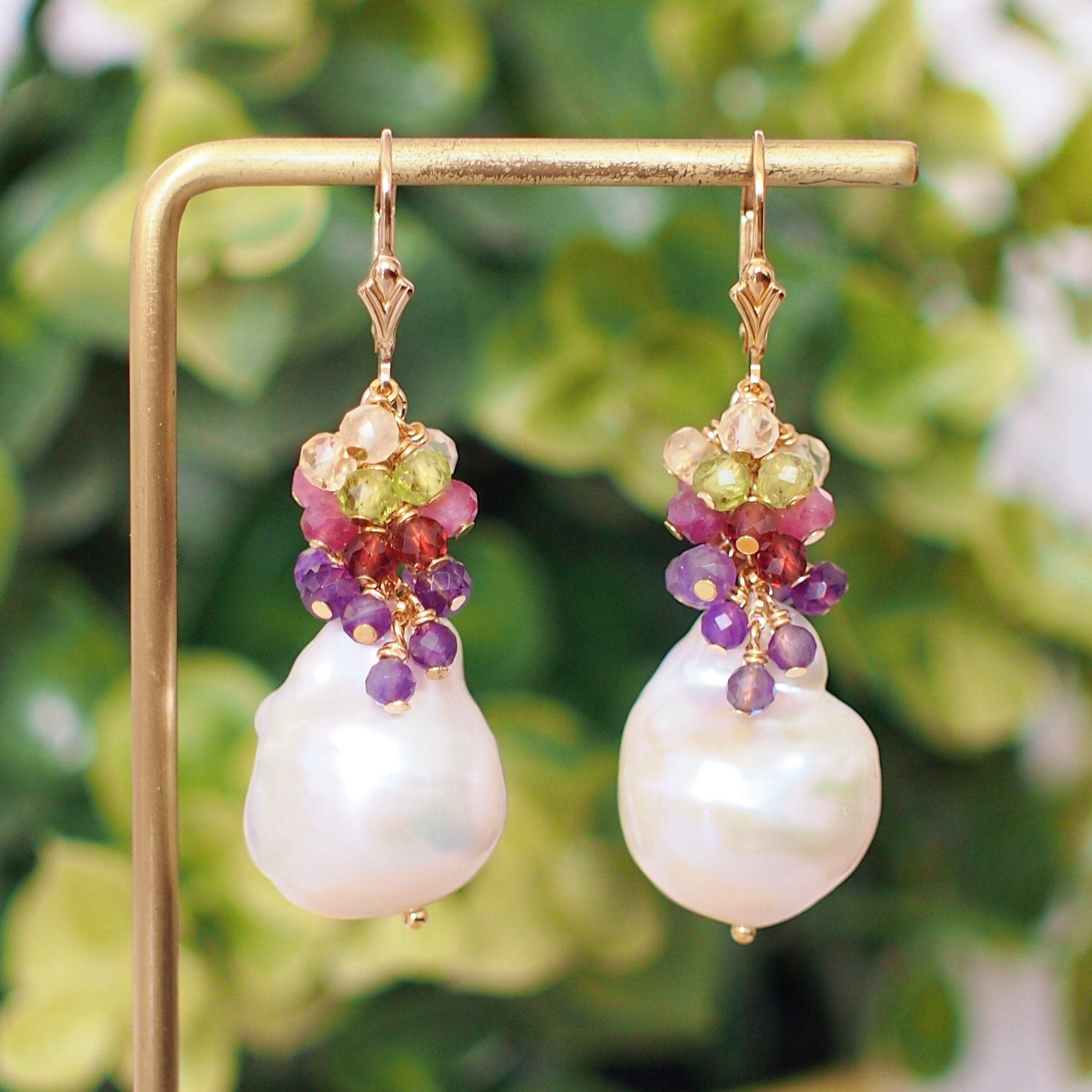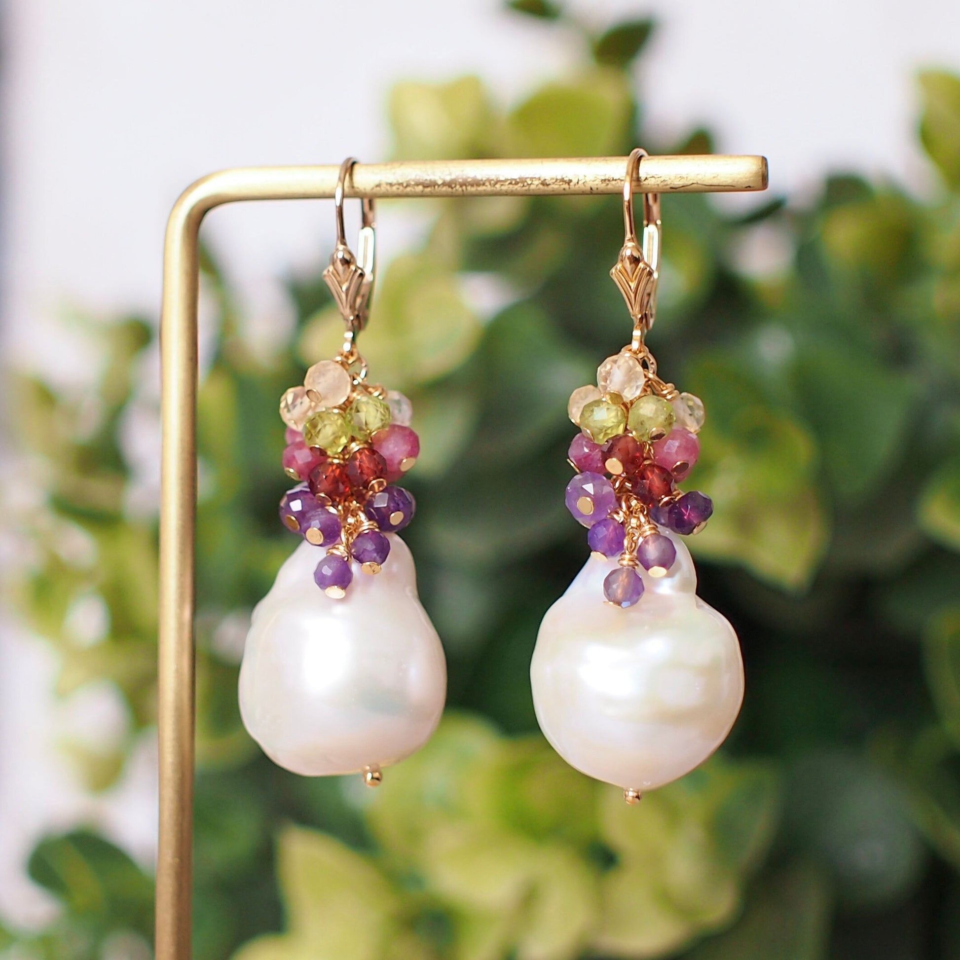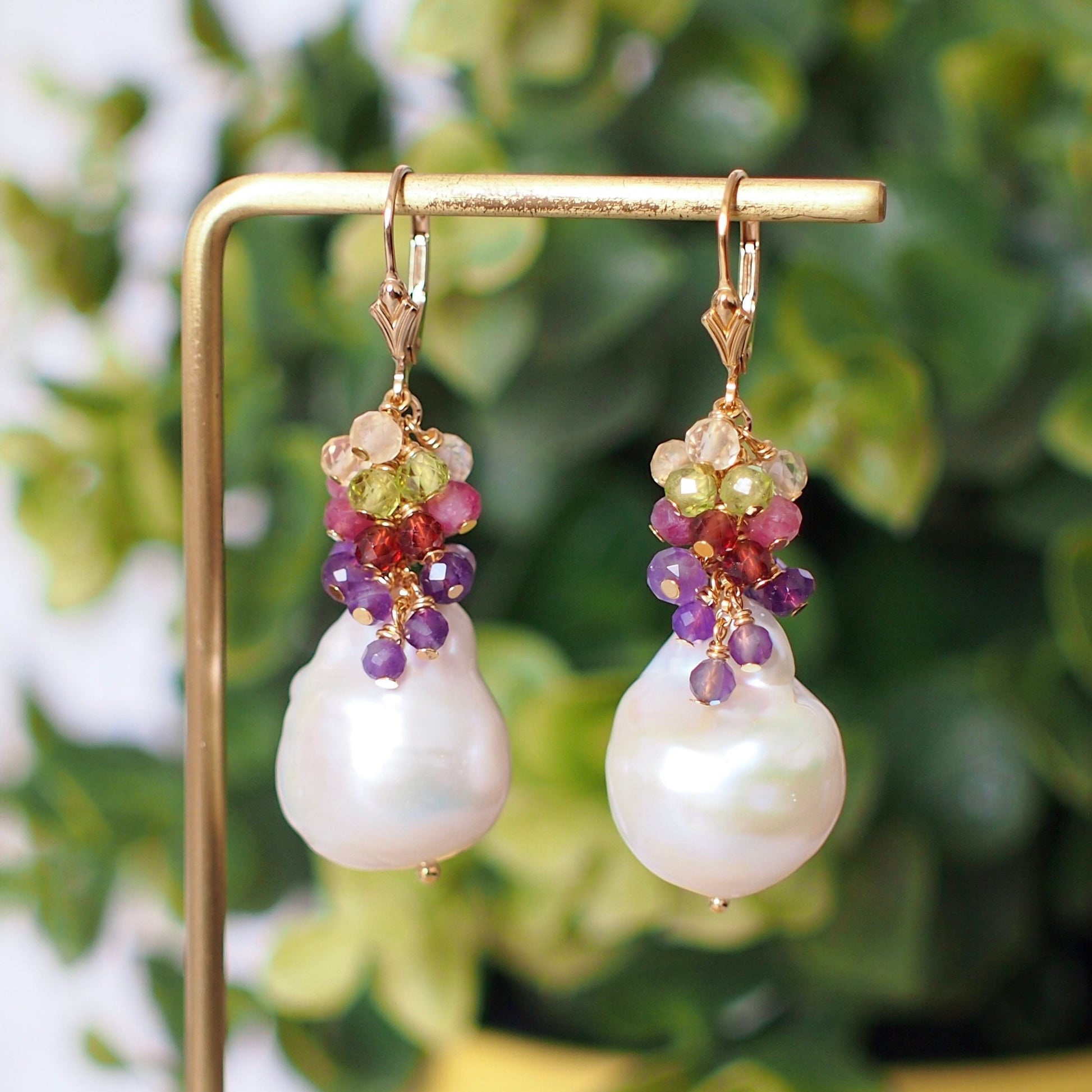 Baroque Pearl Earrings // Flameball Pearls// Colourful Gems Cluster // Elaborated // 14K Gold-filled // Elegant & Gorgeous
