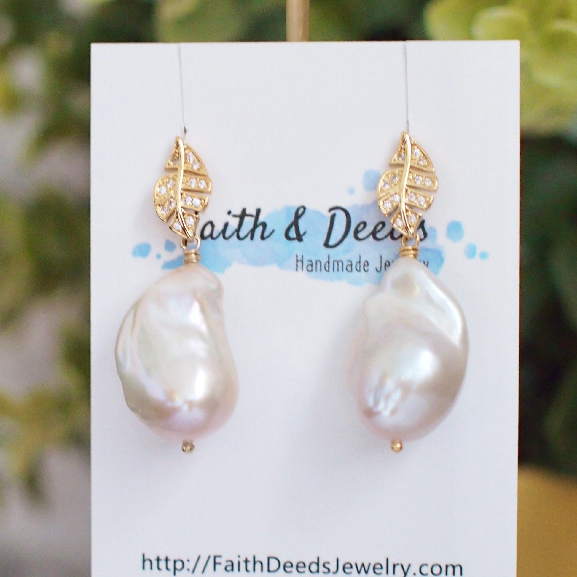 Baroque pearls measure approx. 20-25mm tall. The entire earrings (including the earwire portion) measure approx. 4cm tall.