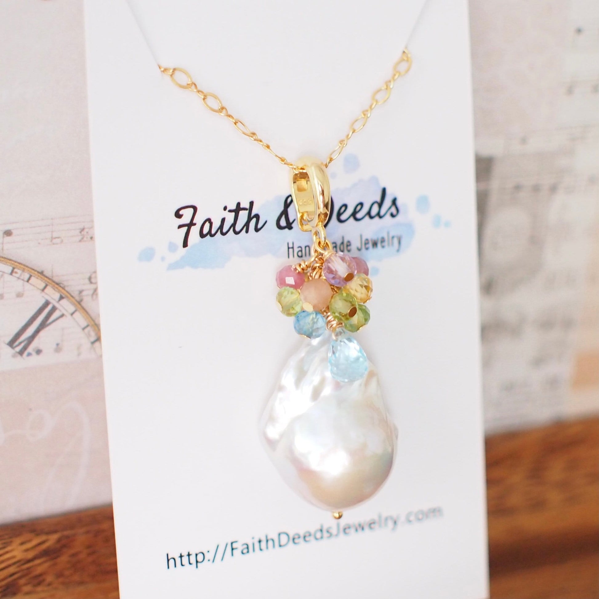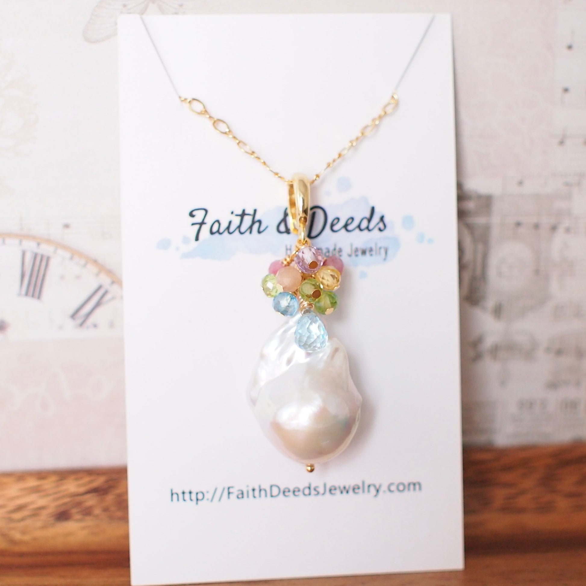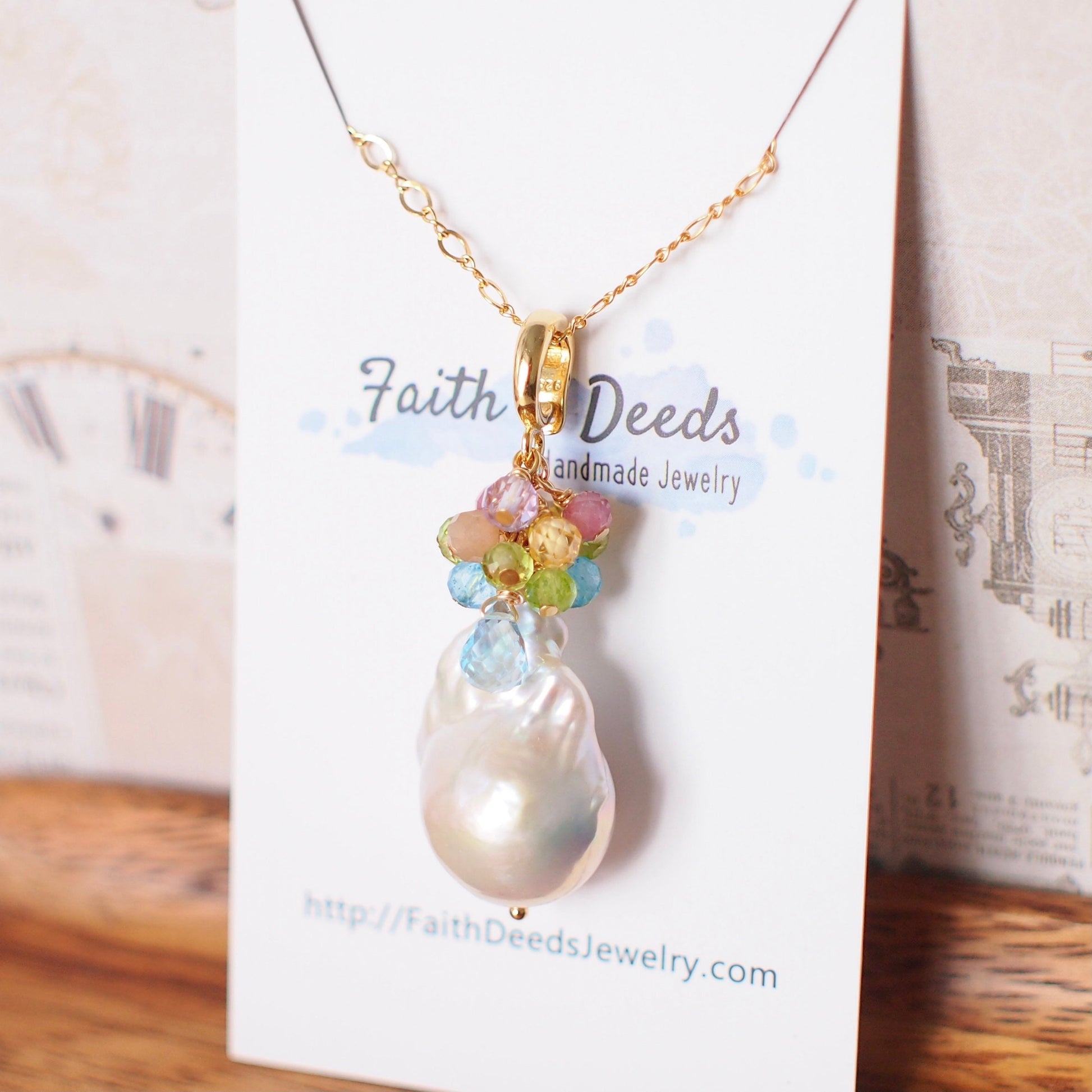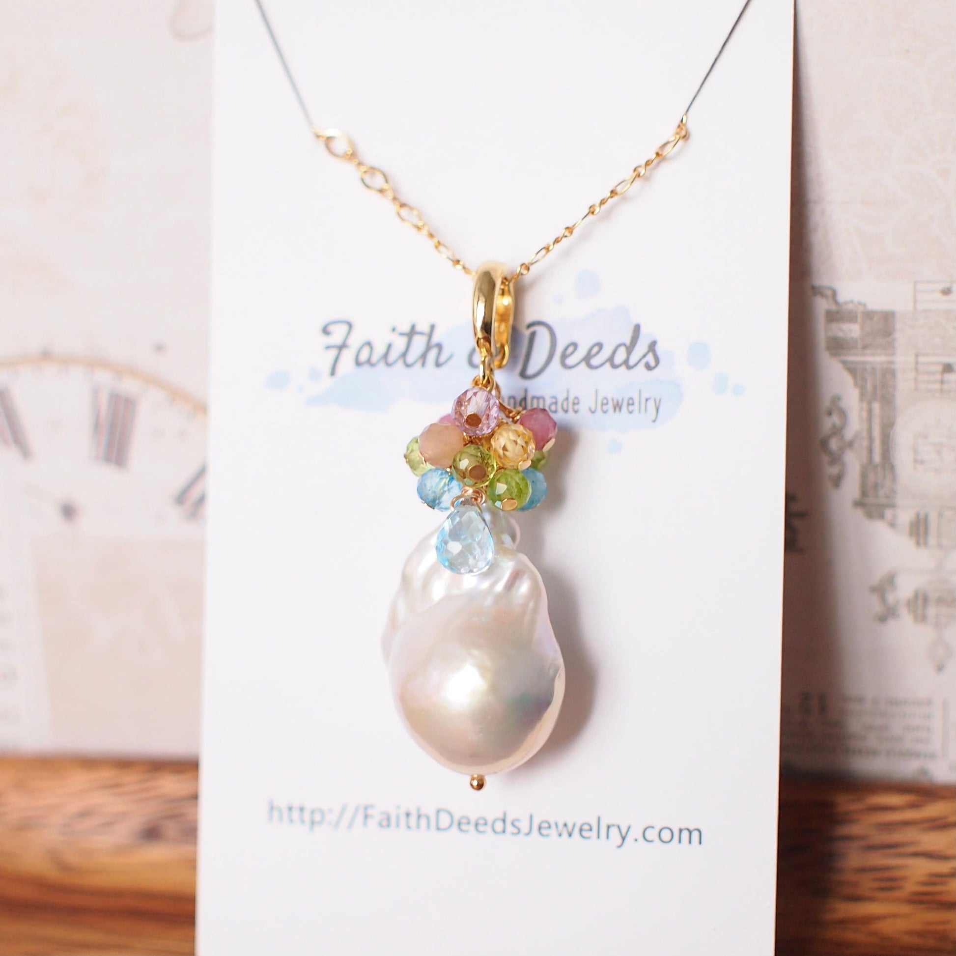 Baroque Pearl x Gem Cluster Pendant // Flameball Pearl // Long Statement Necklace // Rainbow Gems // 14K Gold-filled