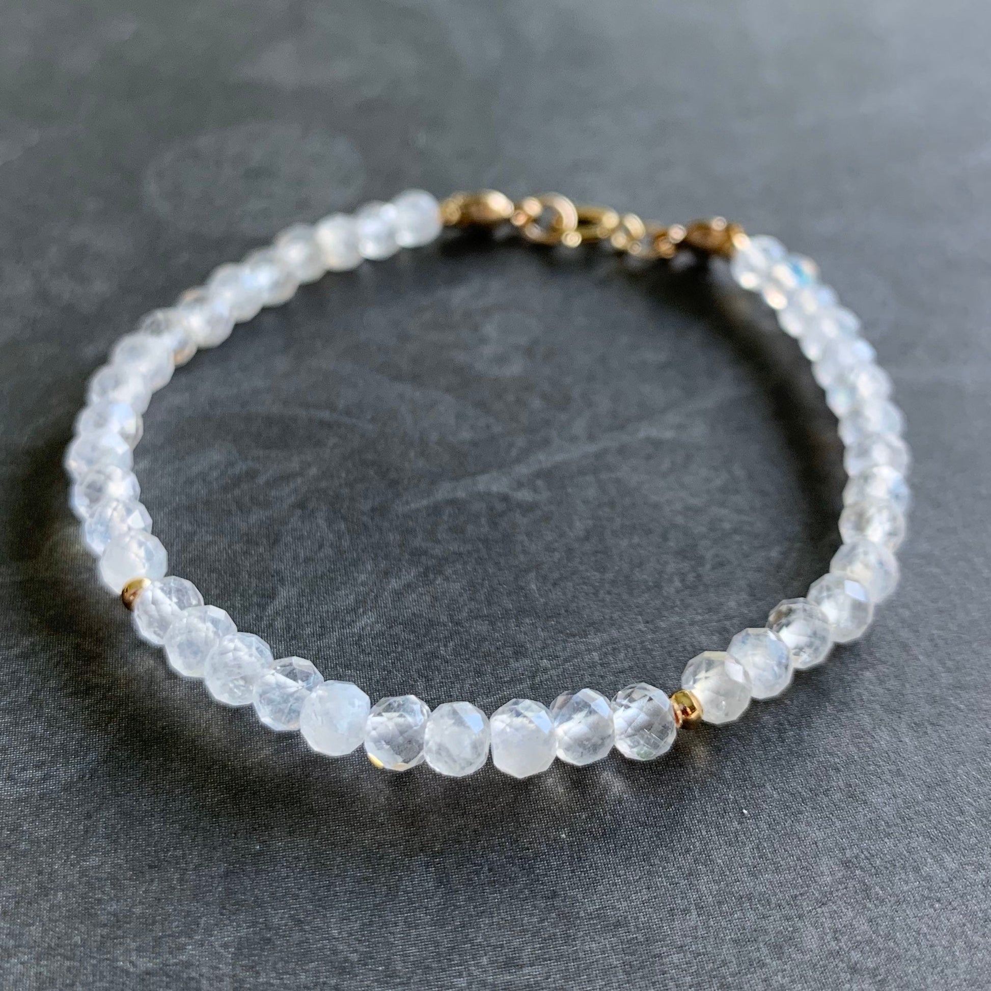 Blue Moonstones Bracelet // Rainbow Moonstones // Sparkly & Elegant // 14K Gold-filled // Stackable