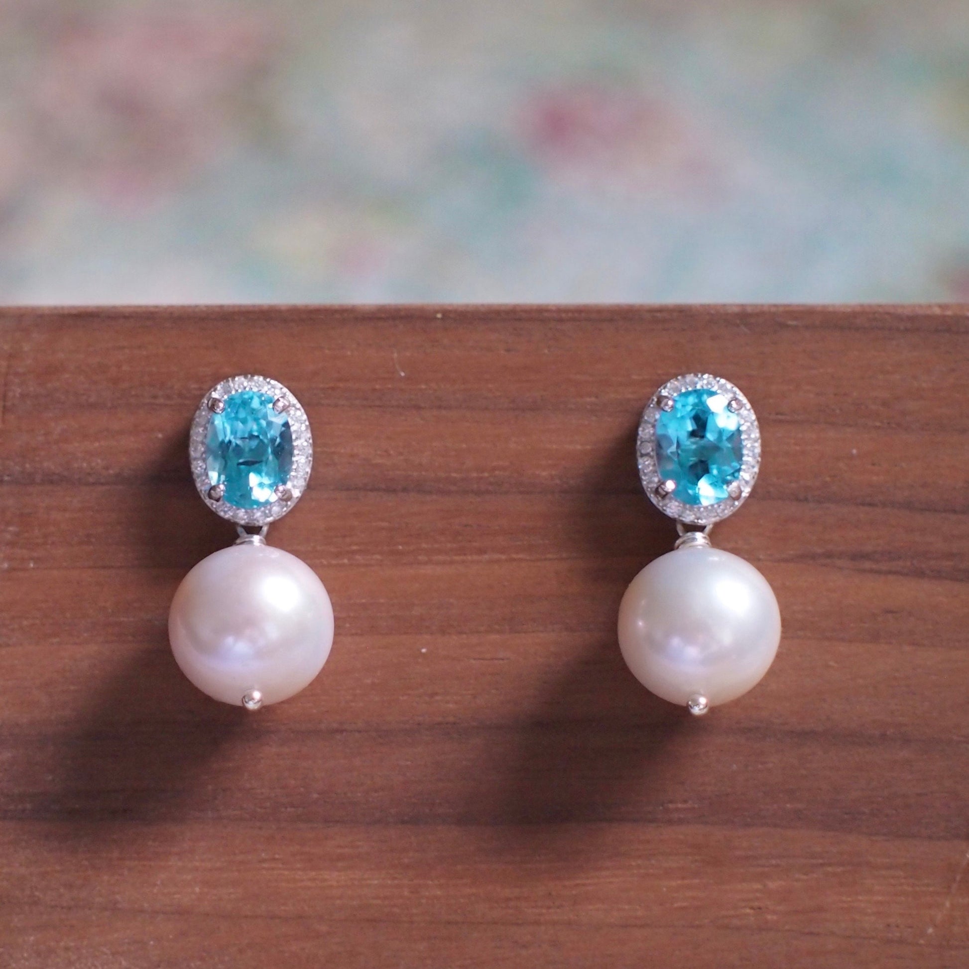 Blue Topaz Earrings // Halo Setting // Cubic Zirconia // 18K White Gold Plated Over Silver