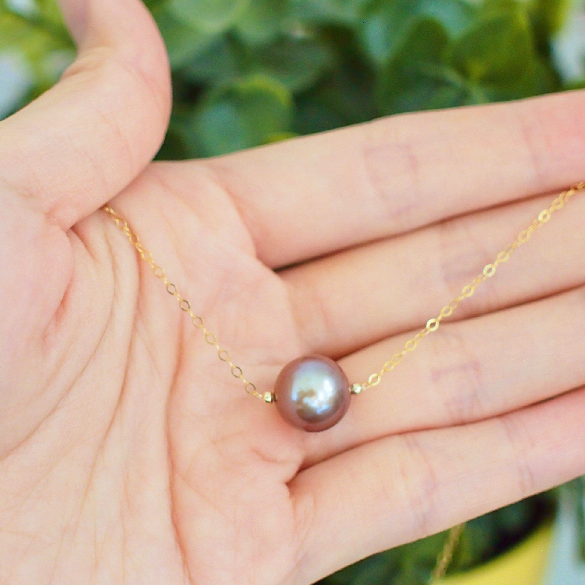Edison Pearl Floating Necklace // Natural Pinkish Purple // Simple & Chic // 14K Gold-filled