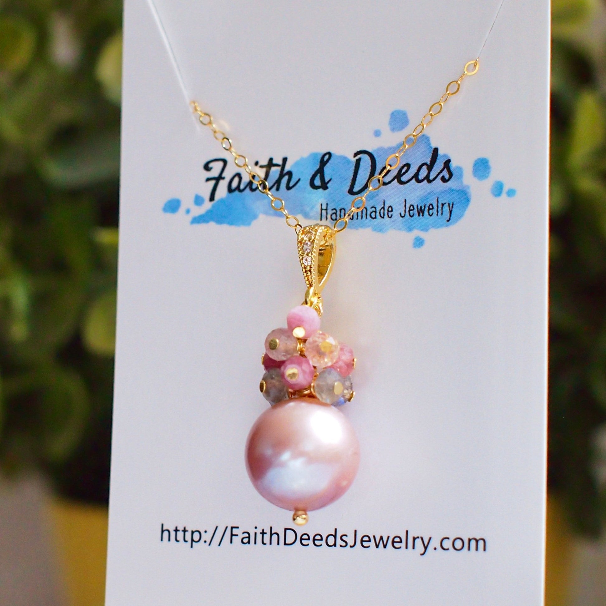Edison Pearl Pendant // Natural Pinkish Purple // Gem Cluster // 14K Gold-filled