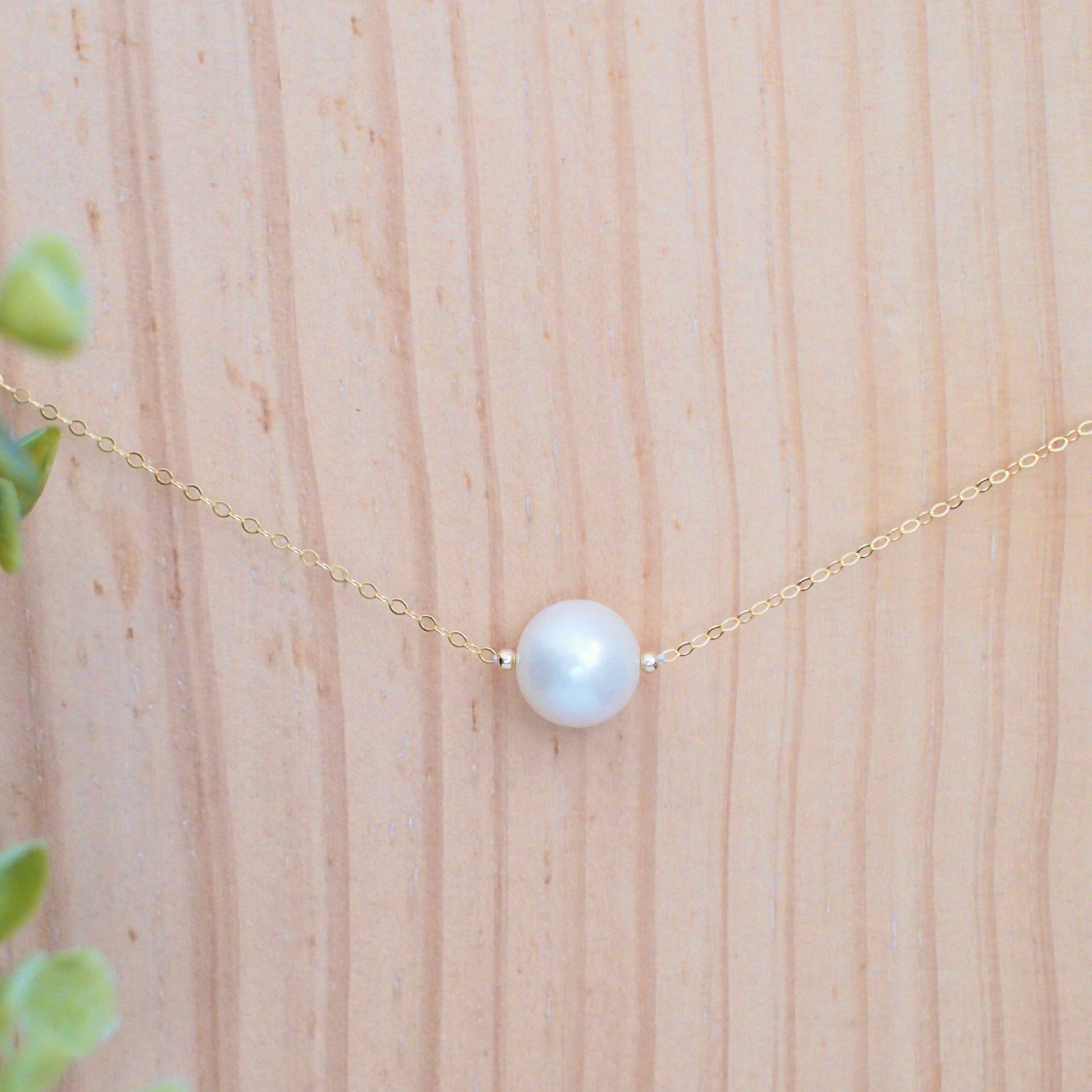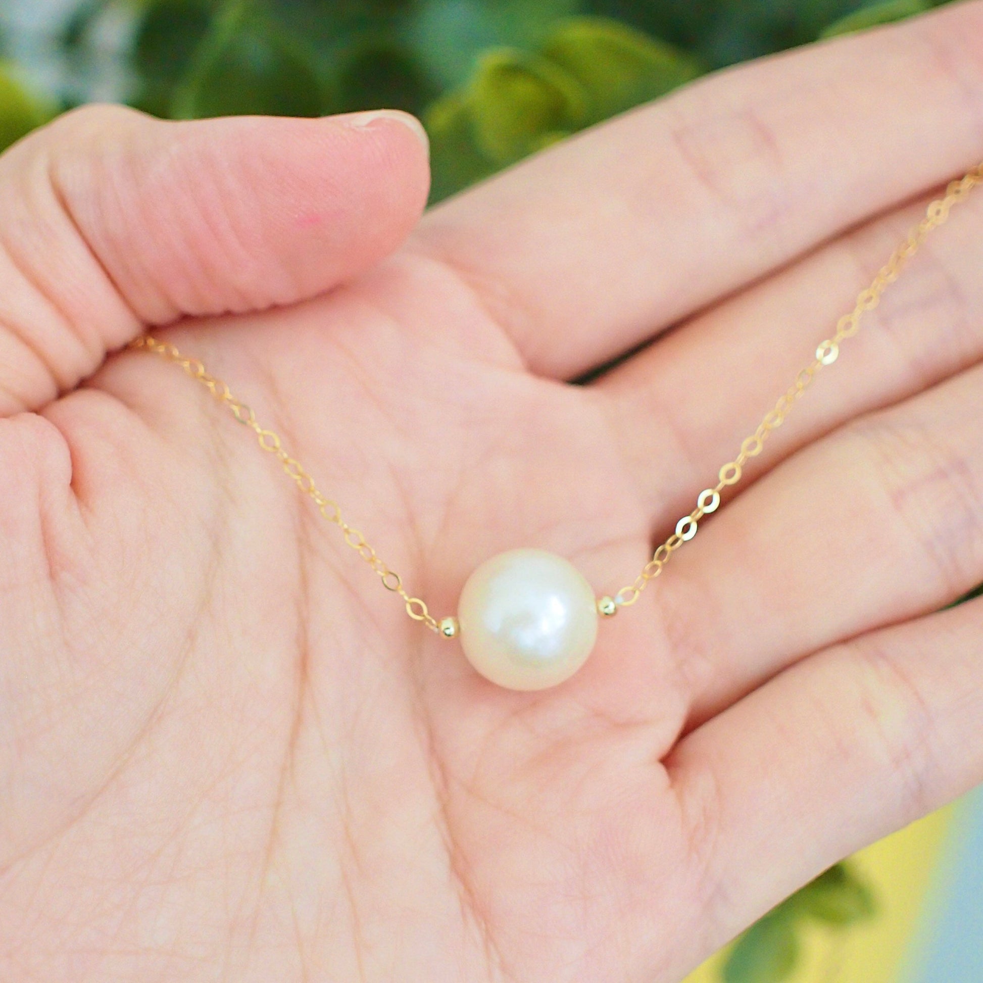 Fresh Water Pearl Floating Necklace // Natural Cream White // Simple & Chic // 14K Gold-filled