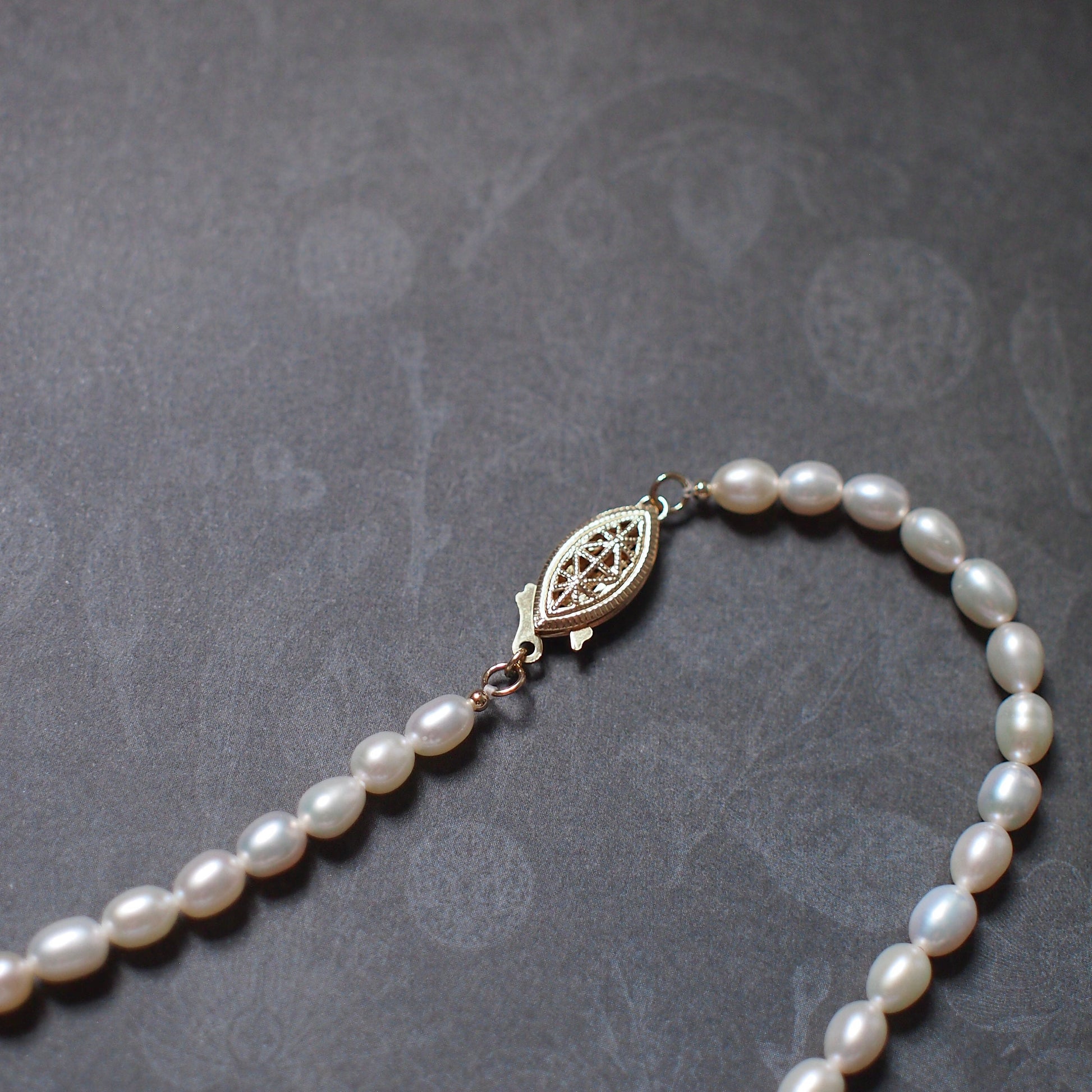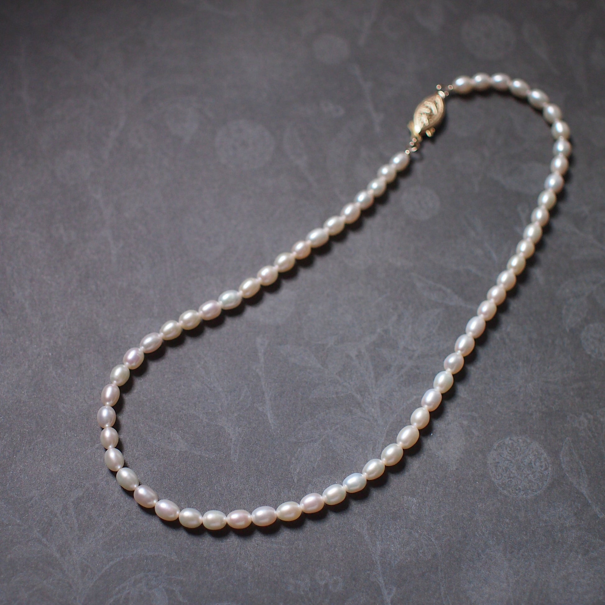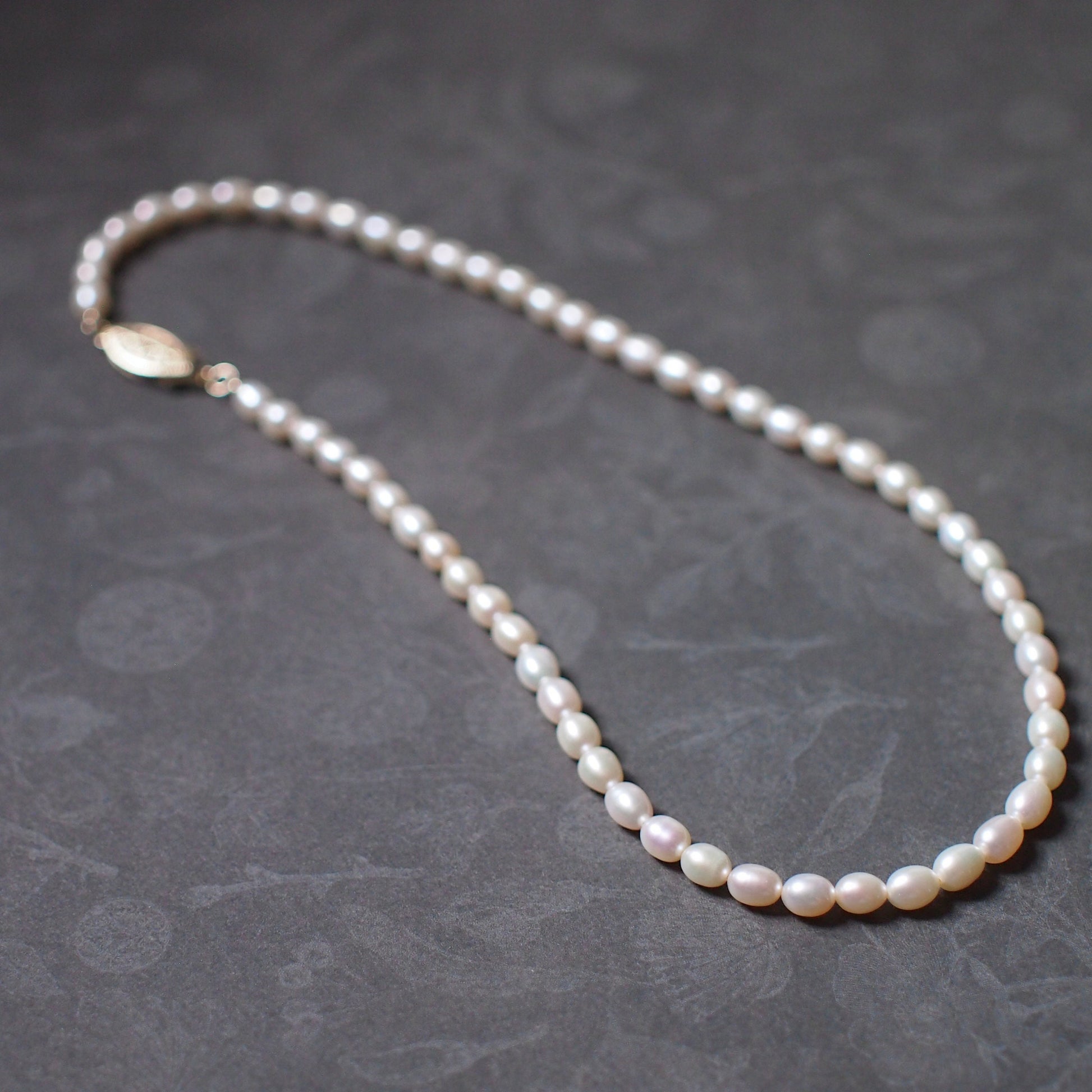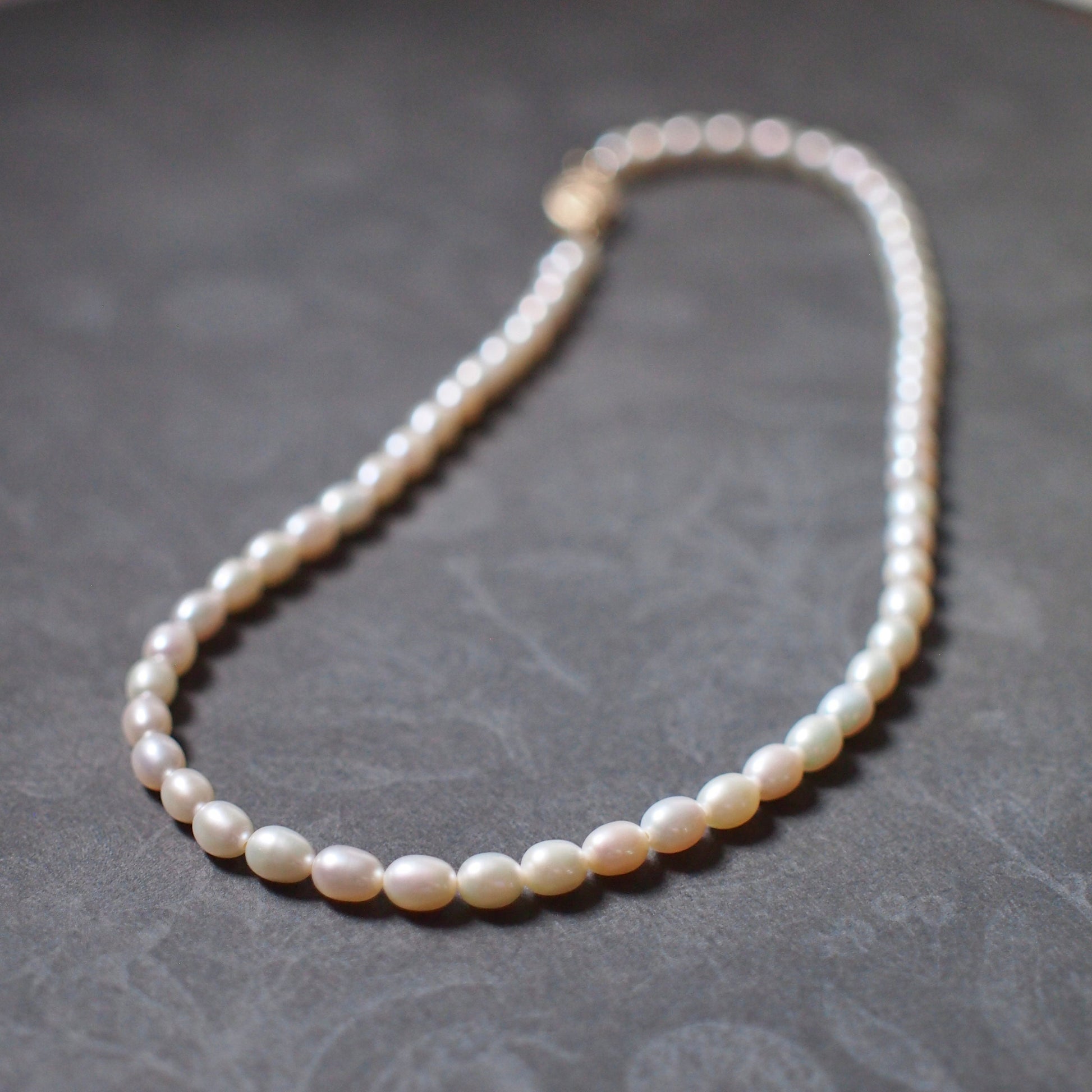 A full strand rice-shape fresh water pearl necklace with amazing lustre and shine. Youthful looking and ready to rock in any outfit.