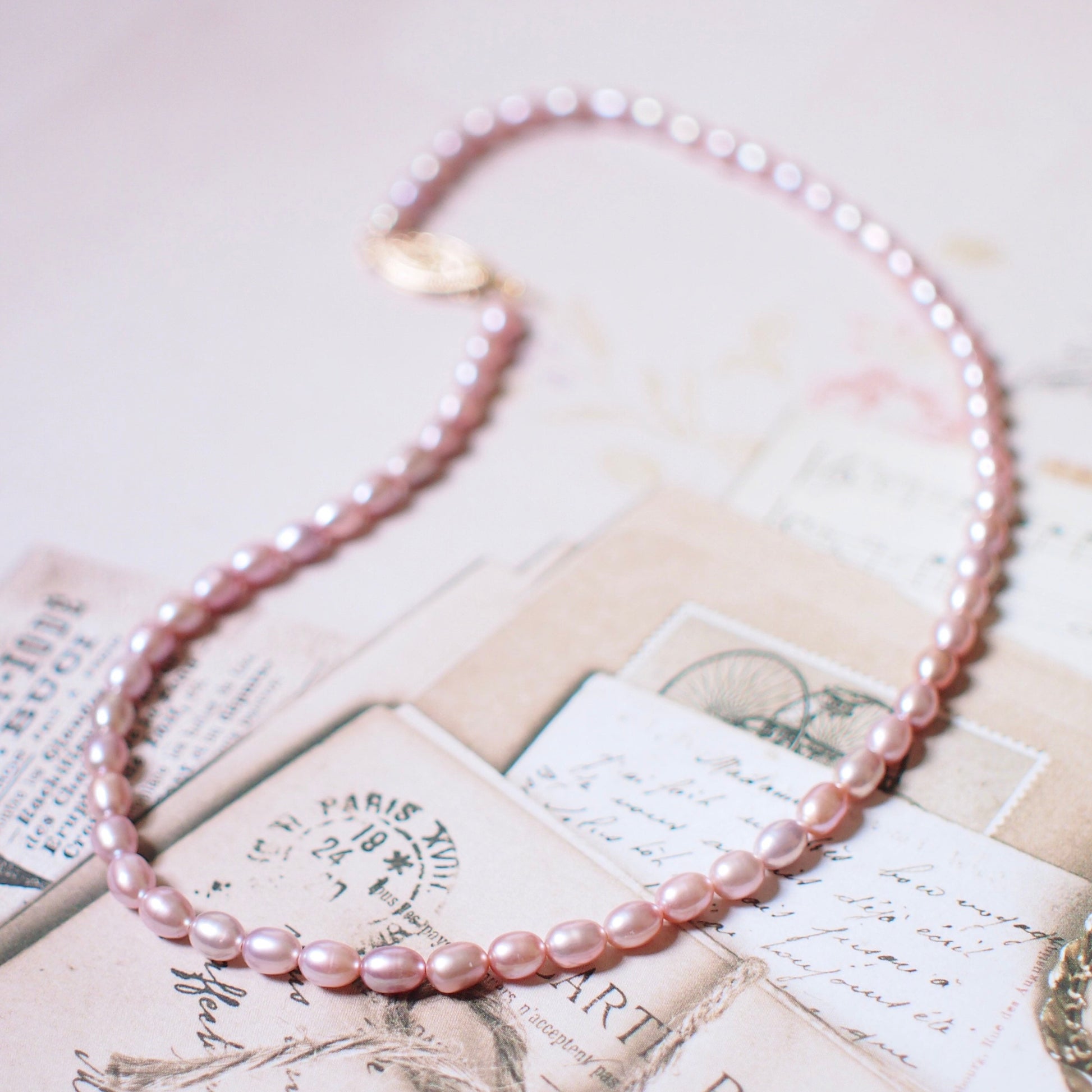 A full strand rice-shape sweet purple fresh water pearl necklace with amazing lustre and shine. Lovely looking and ready to rock in any outfit.