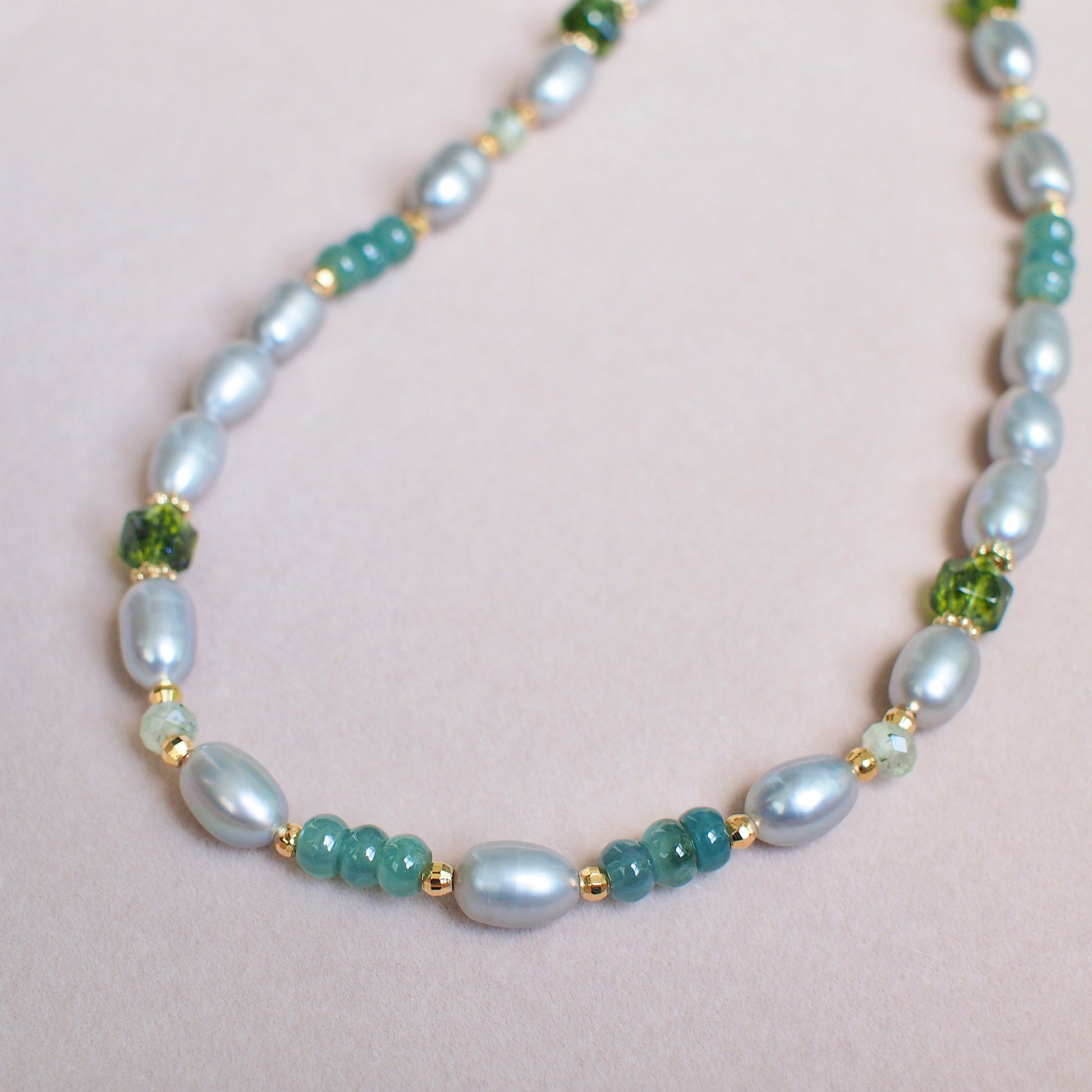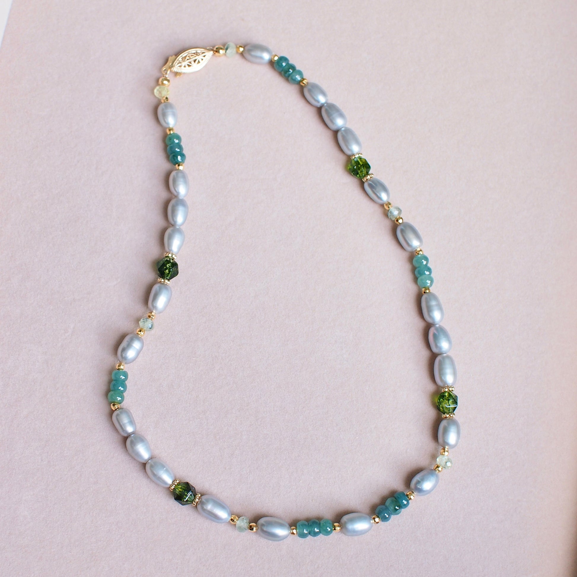 Gray Pearl x Jade Necklace // Peridot & Prehnite // Modern & Chic
