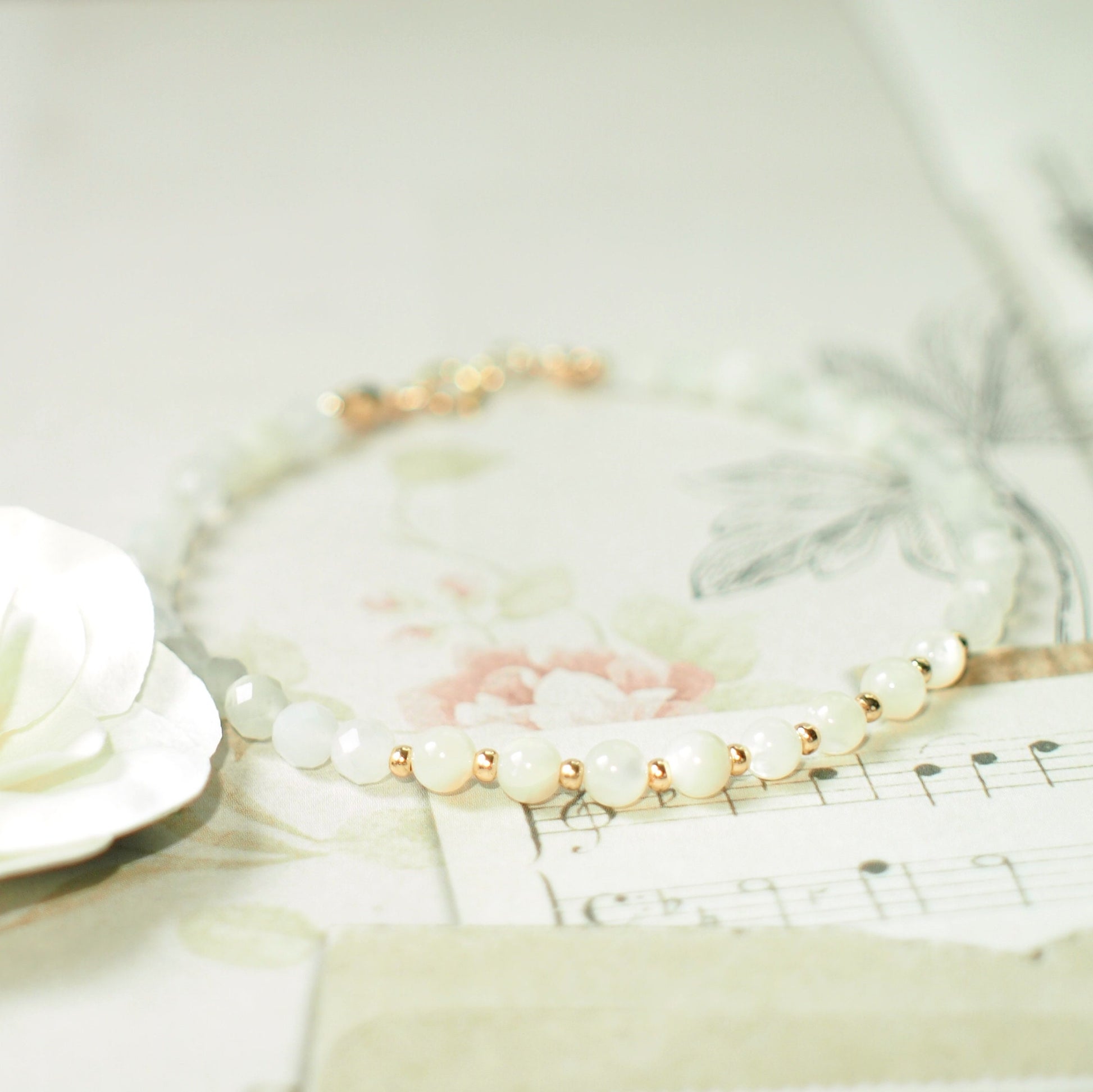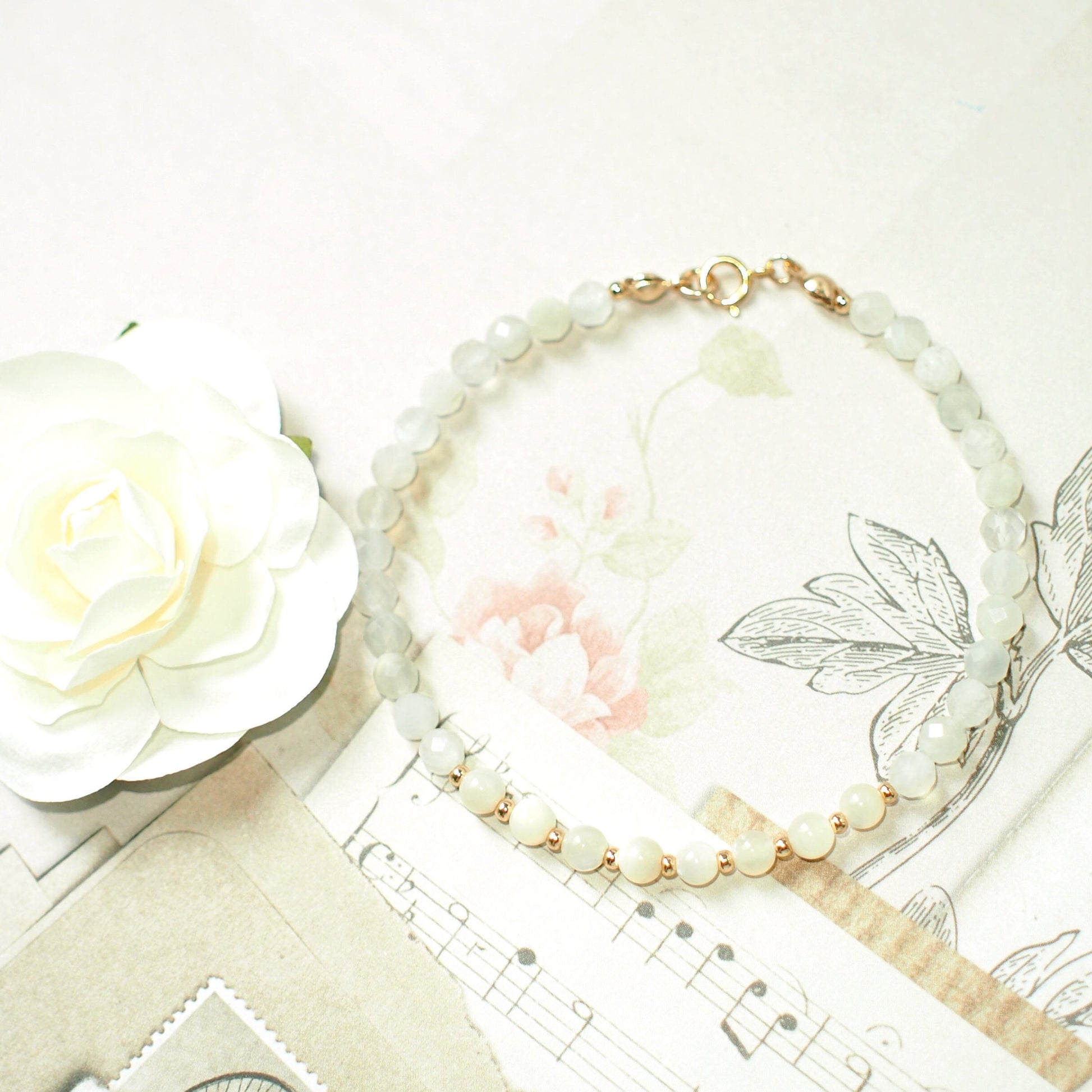 Moonstones x Mother of Pearl Bracelet // Sophisticated & Sleek // Dainty // Stackable // 14K Gold-filled