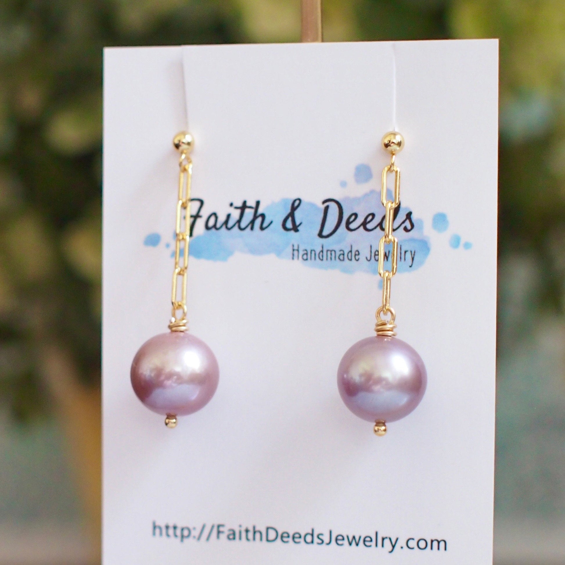 Purple Edison Pearl Earrings // 14K Gold-filled // Simple & Chic // Gorgeous Lustre