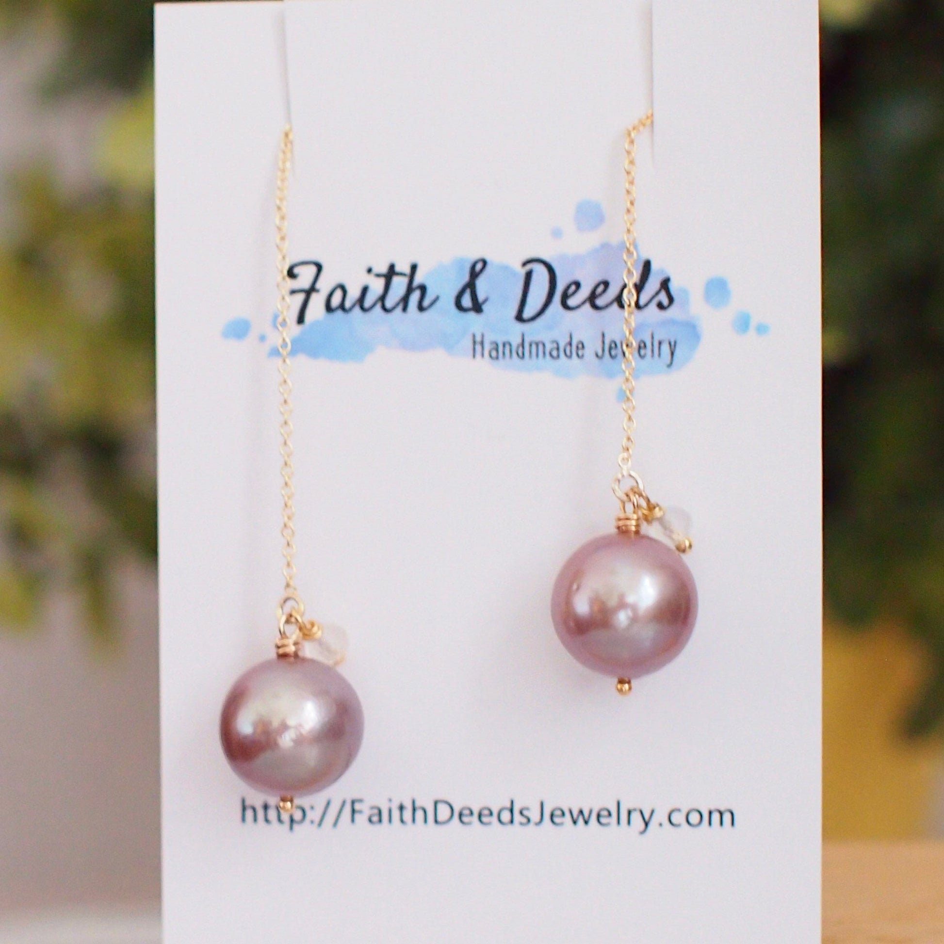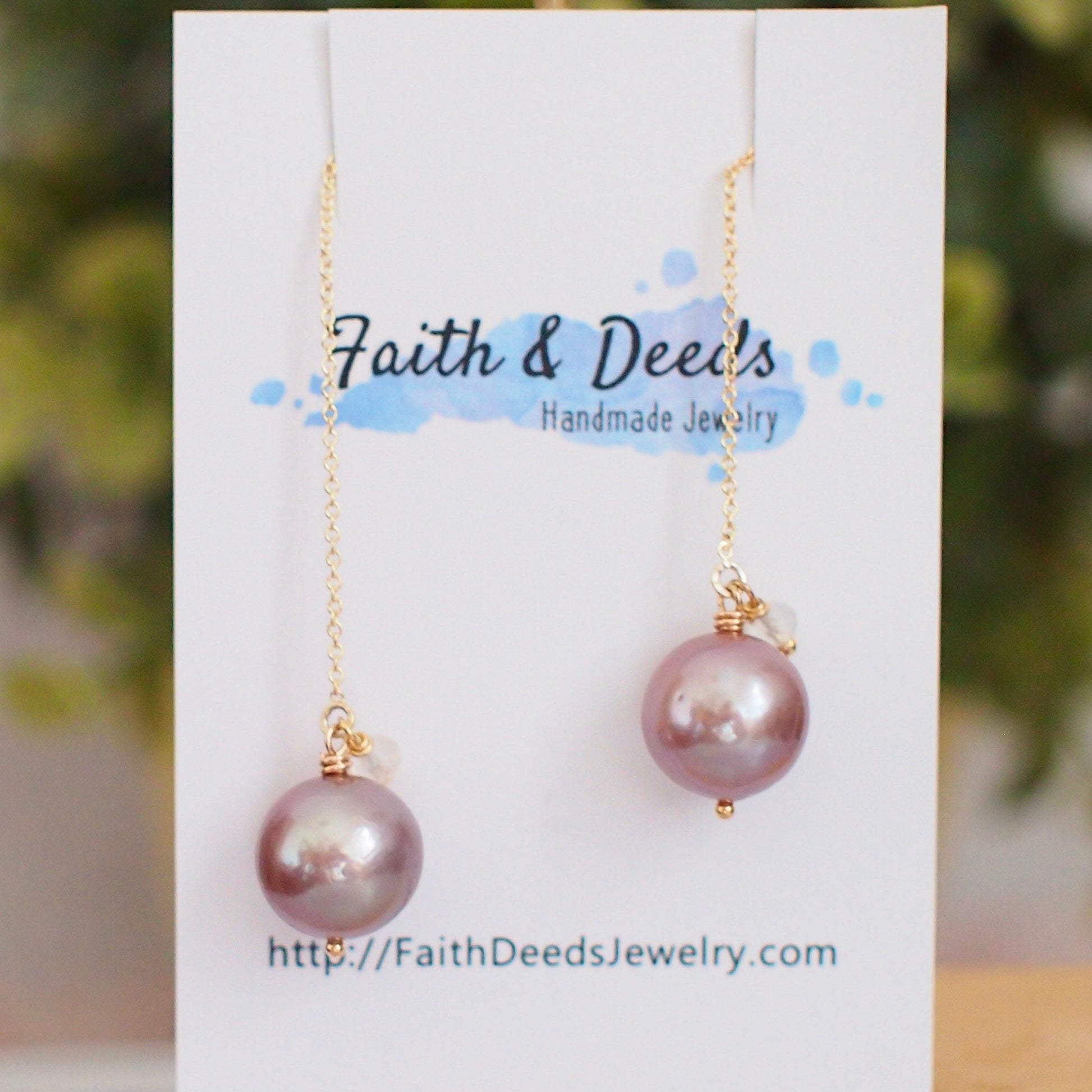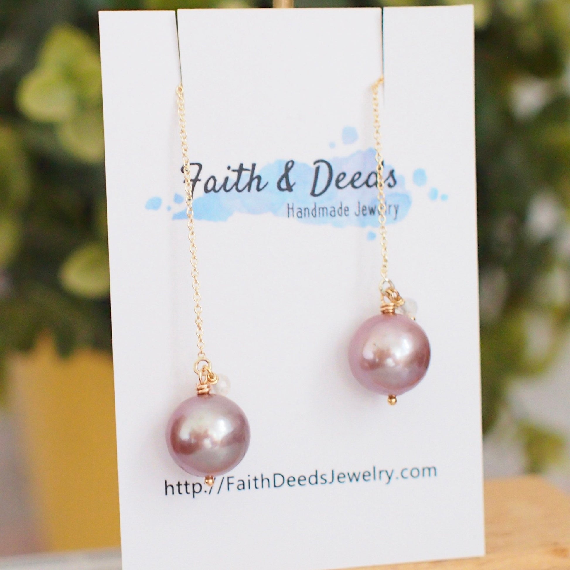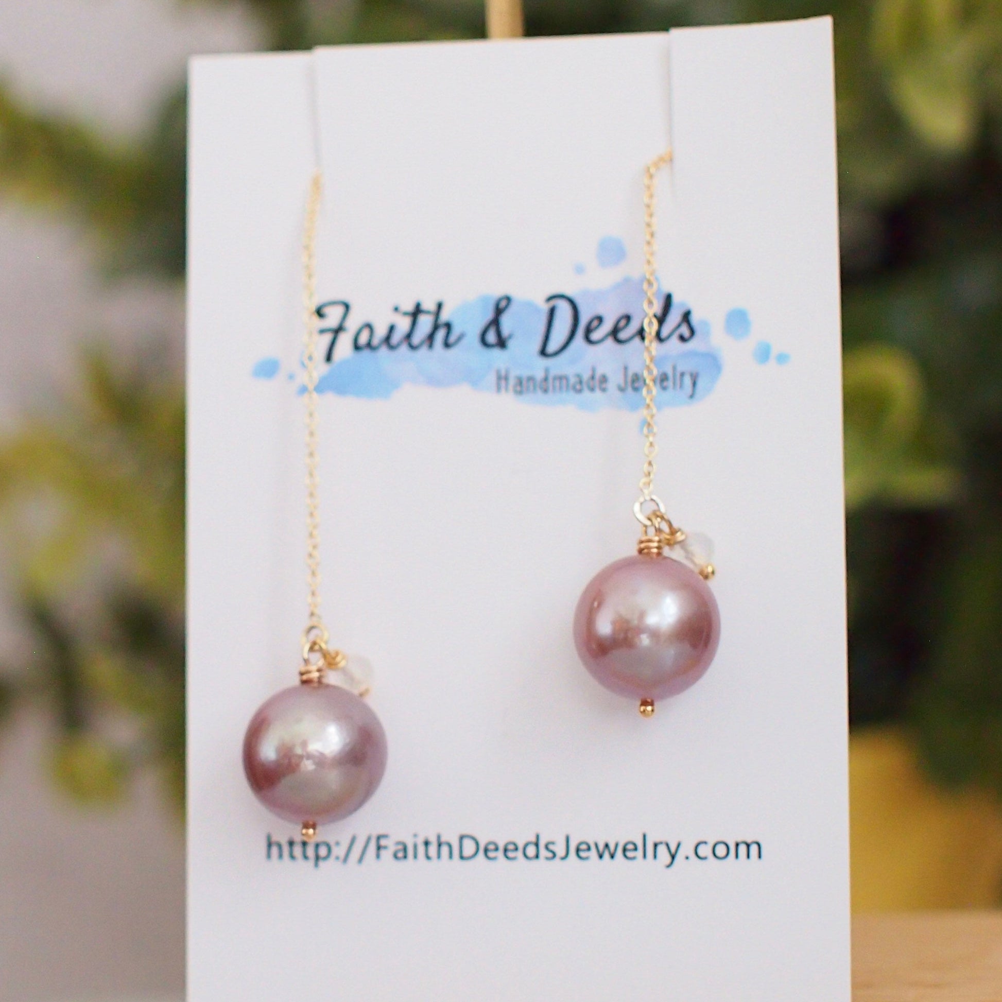 Simple and gorgeous! These beautiful earrings are featuring 2 shiny Edison pearls in stunning pinkish purple with amazing lustre. Accented with dainty rainbow moonstone rondelles, these beautiful pearls dangles on 14K gold-filled ear threads that’s great for everyday wear!