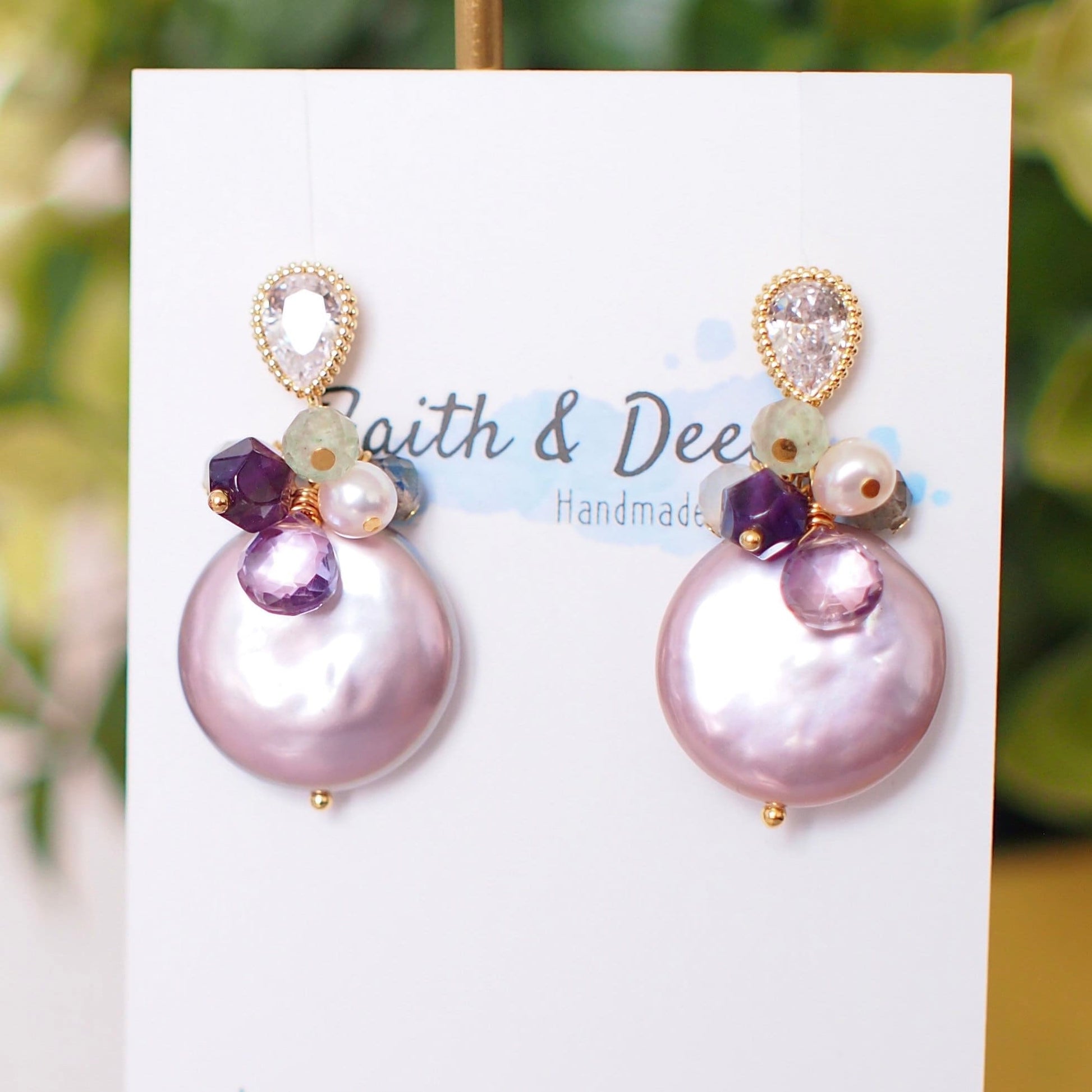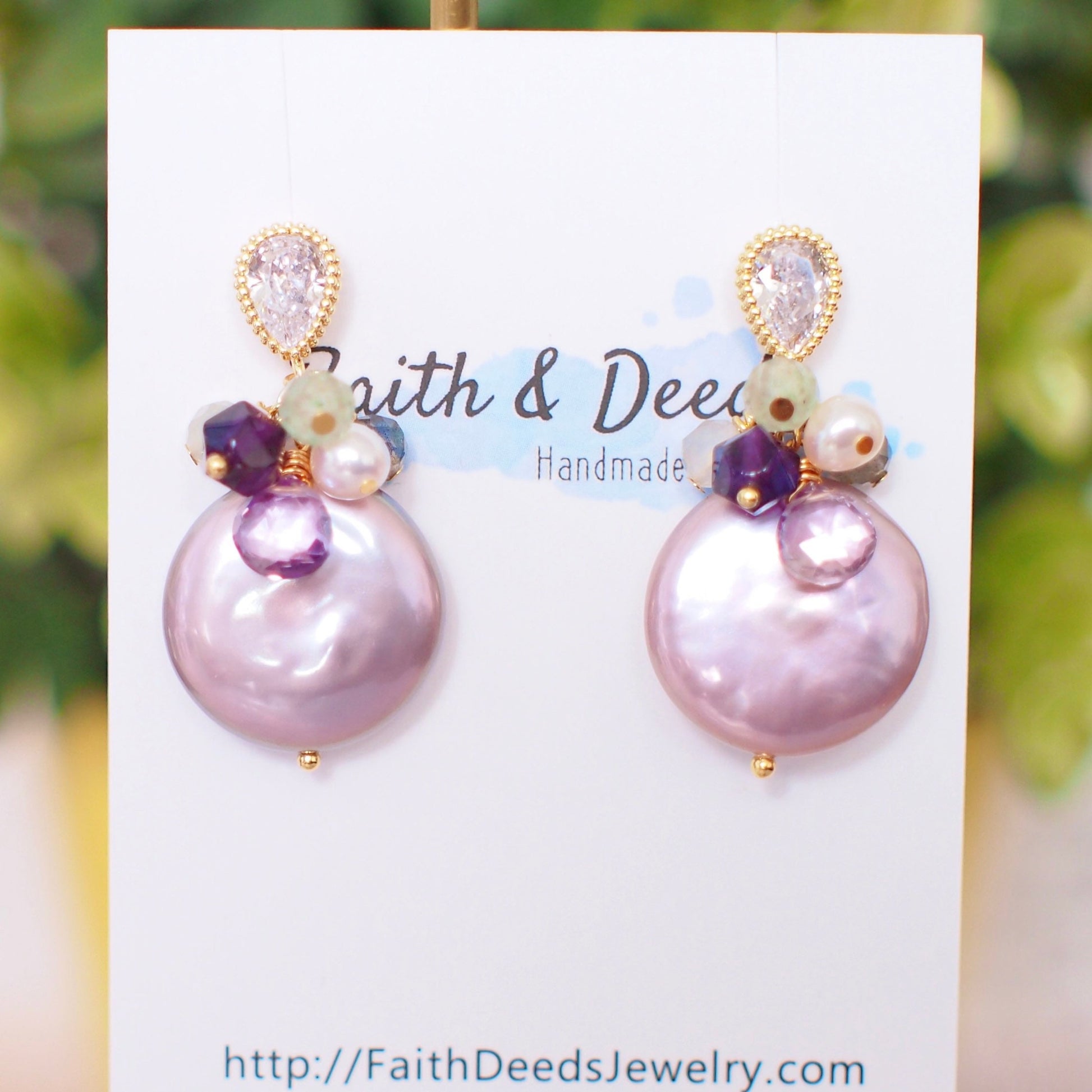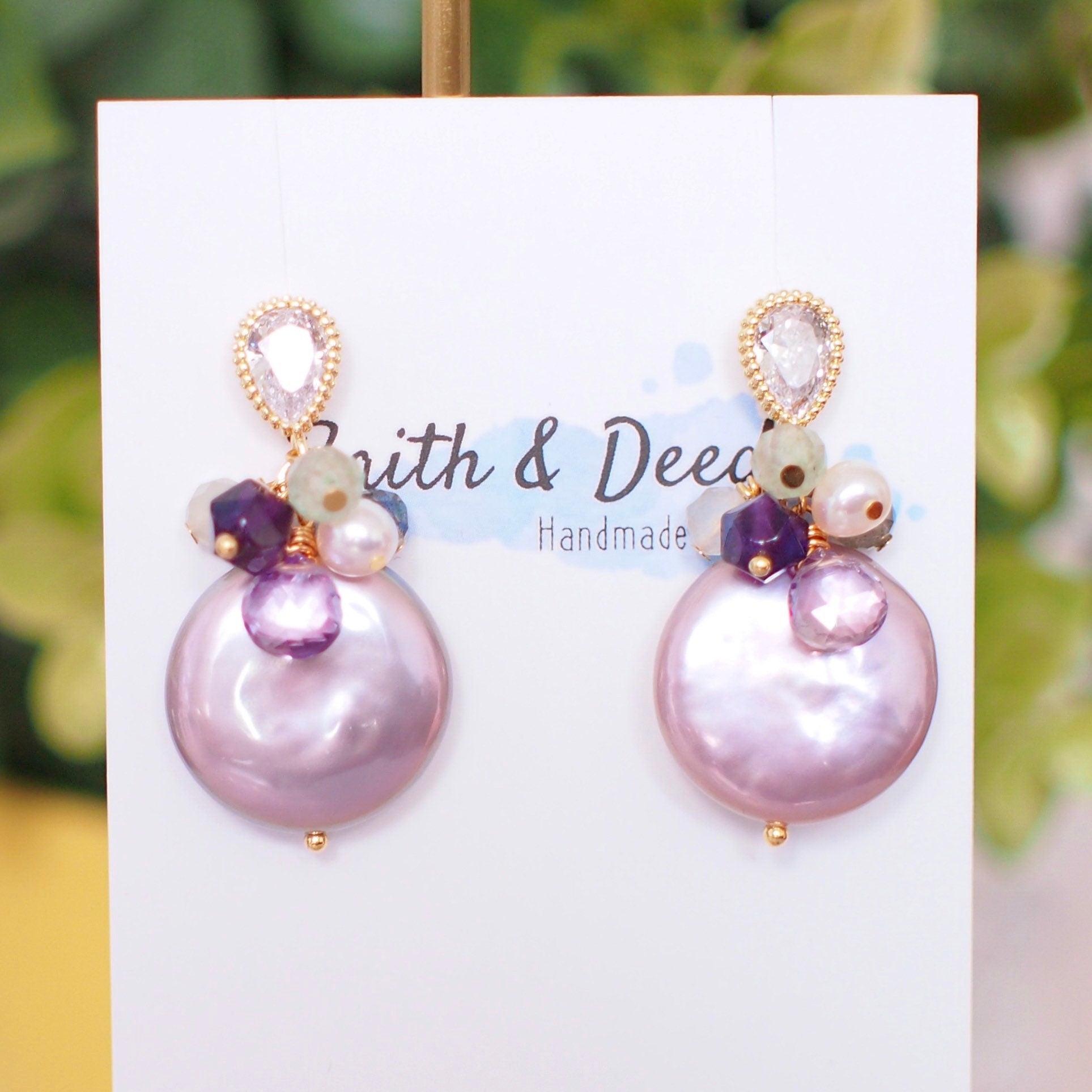 Purple Fresh Water Coin Pearl Earrings // Gem Cluster // 14K Gold-filled // Splendid & Gorgeous