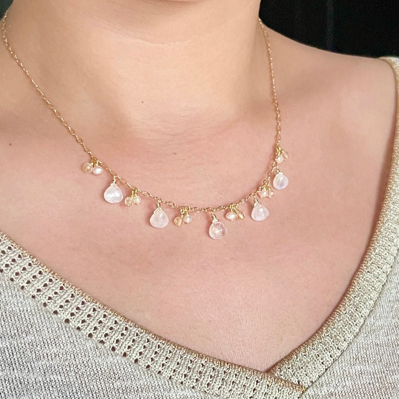 Rainbow Moonstone Necklace // Pearls x Citrine Quartz // 14K Gold-filled // Dainty and Graceful