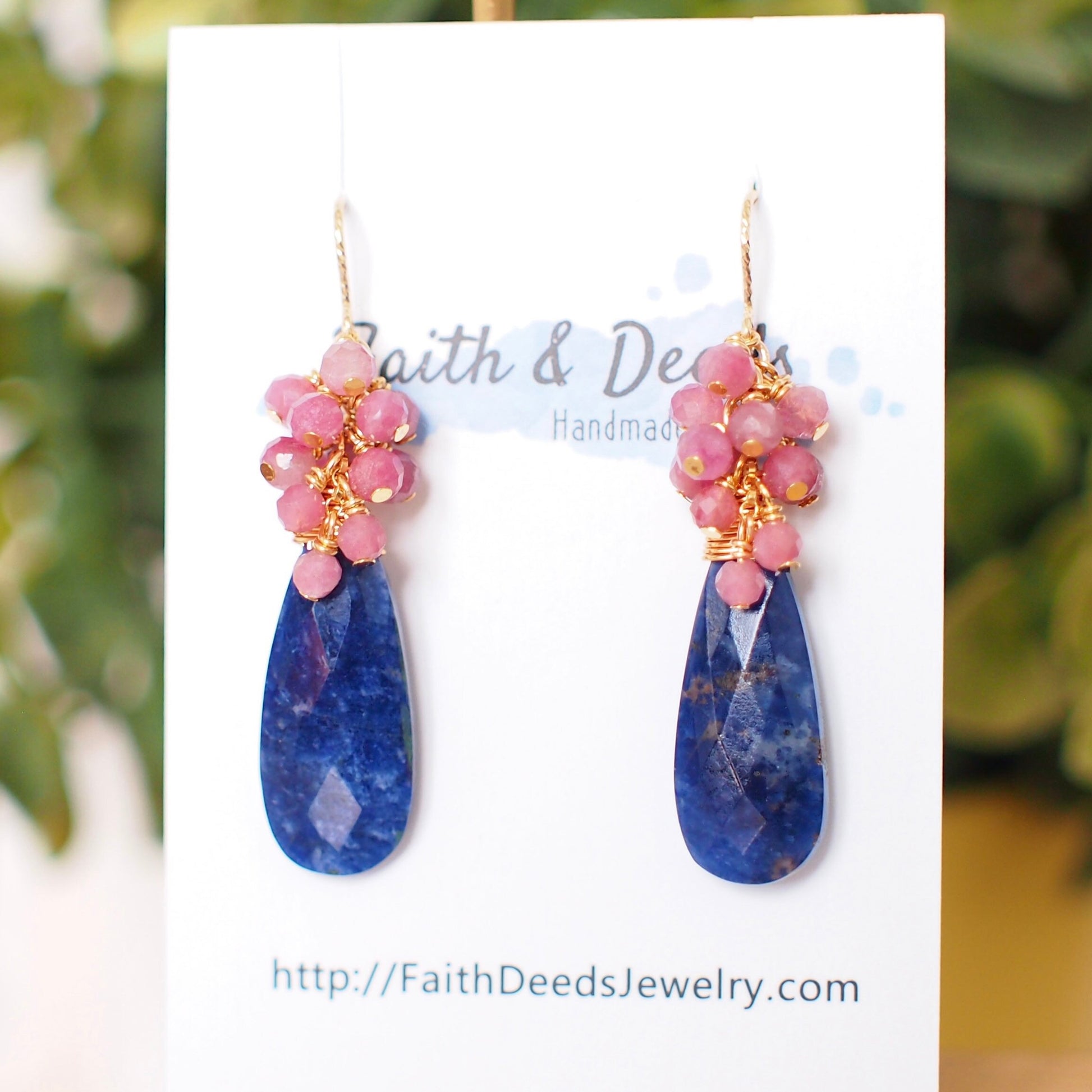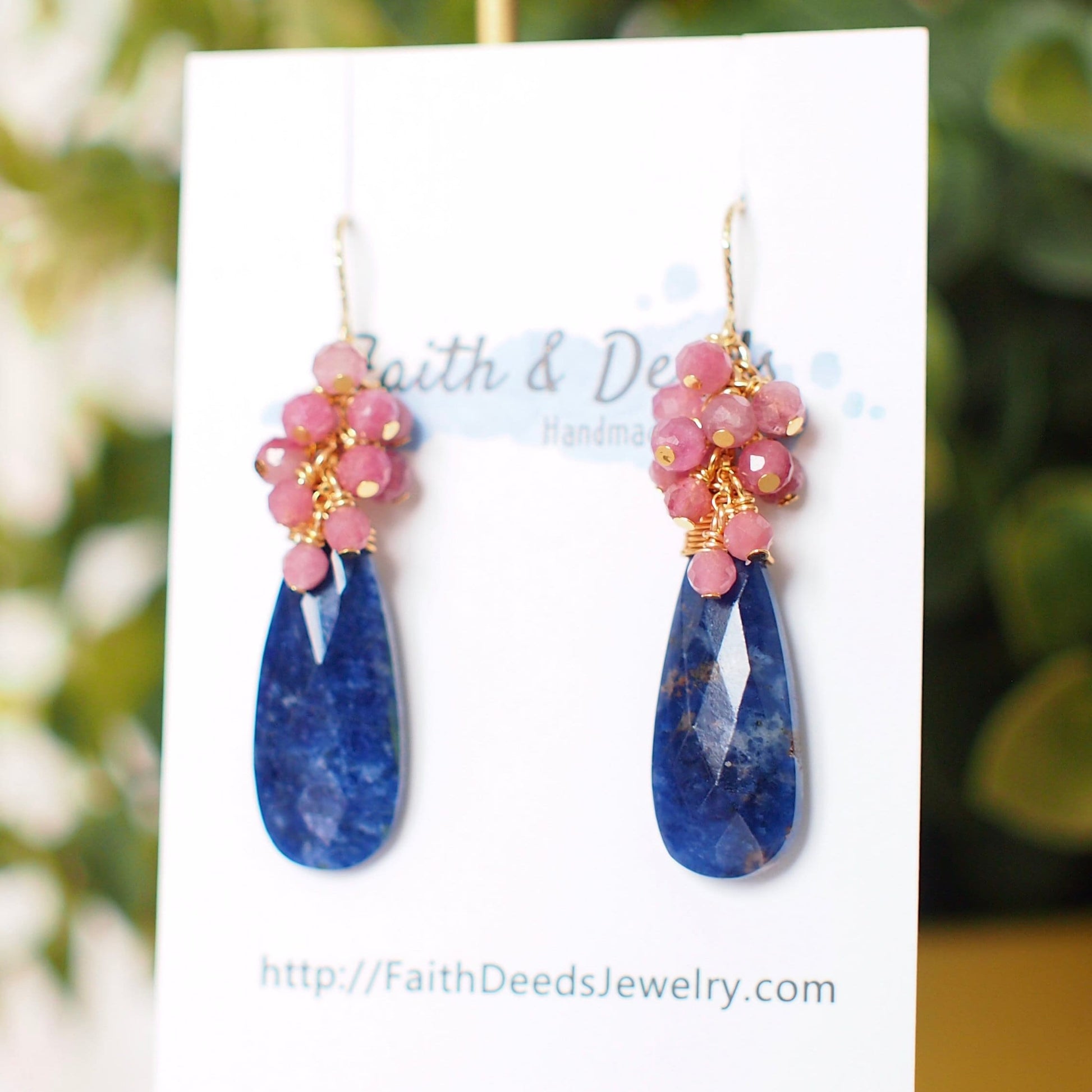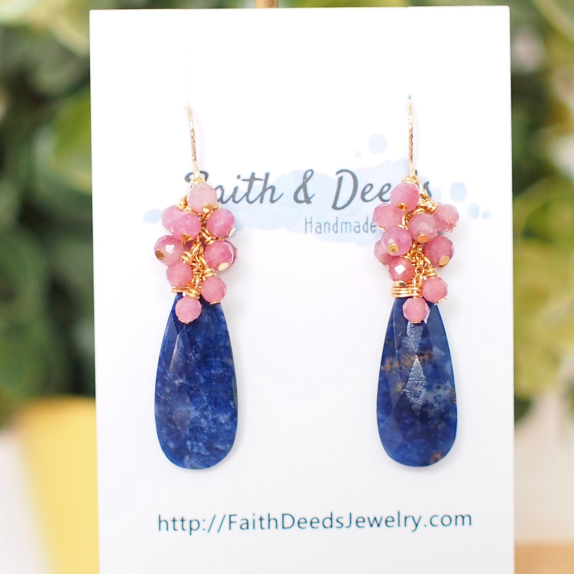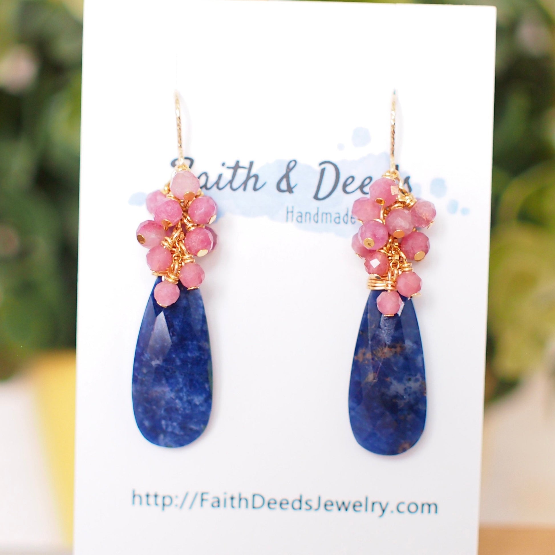 Sodalite x Pink Tourmaline Earrings // Statement Earrings // Gem Cluster // 14K Gold-filled // Gorgeous & Striking