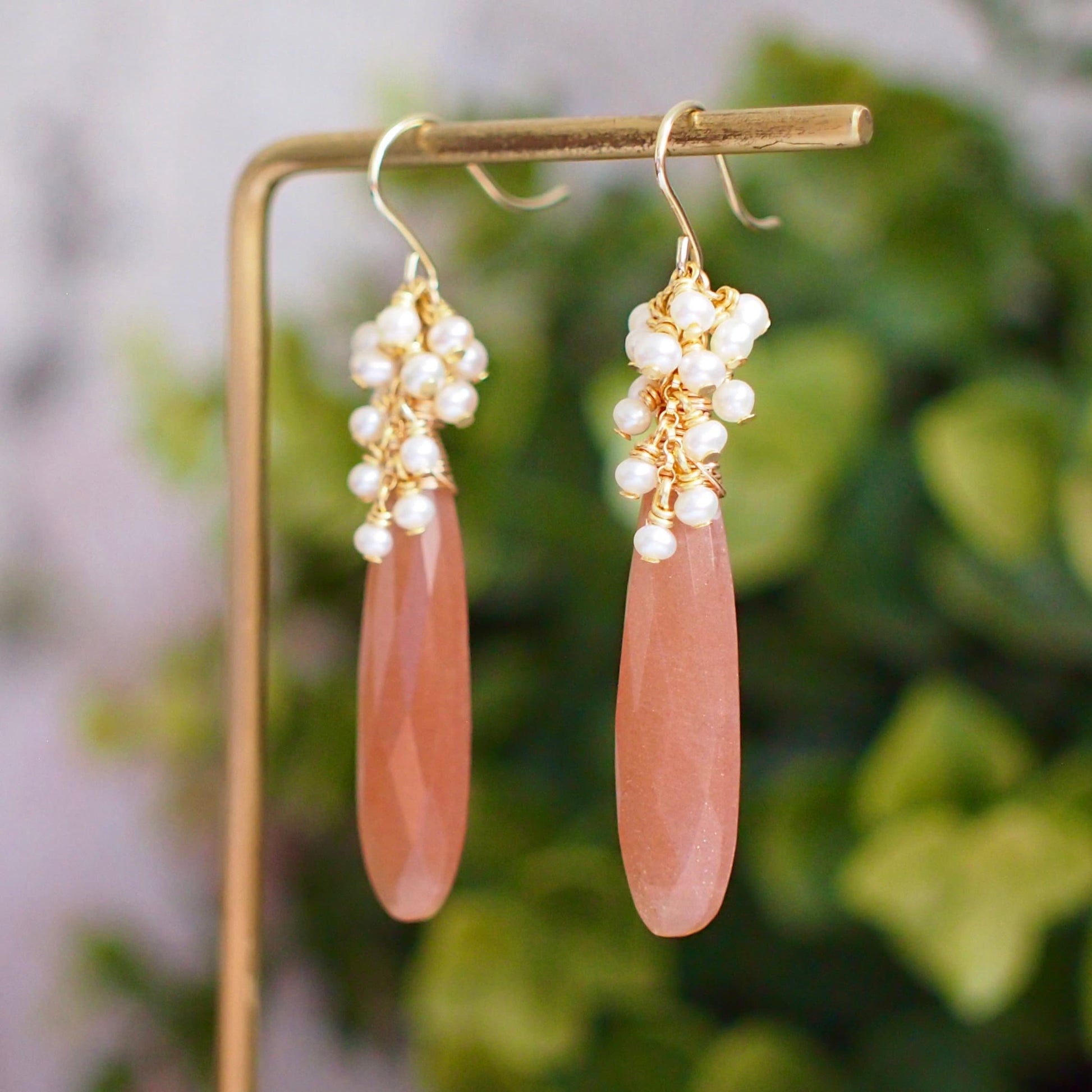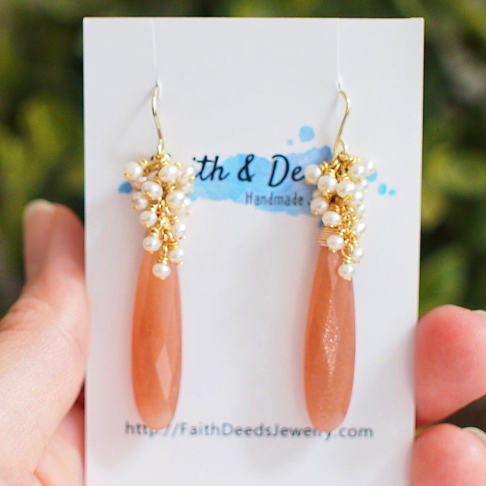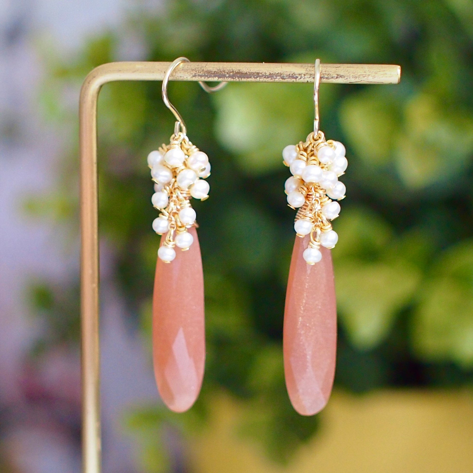 Sunstone Earrings // Statement Earrings // Pearl Cluster // 14K Gold-filled // Wire-wrapped // Elegant & Timeless