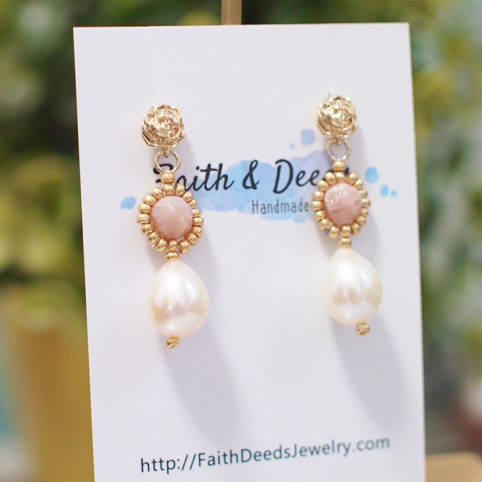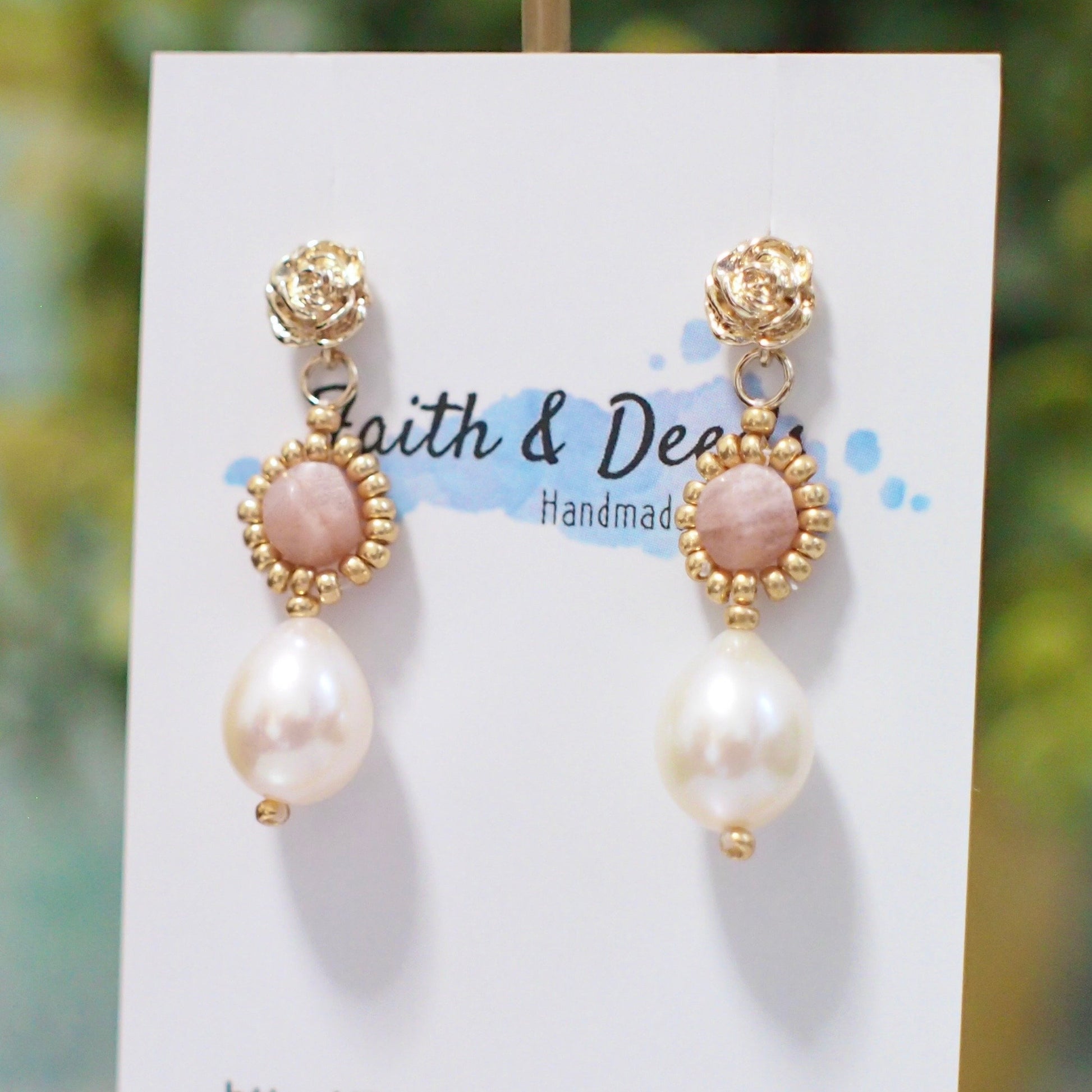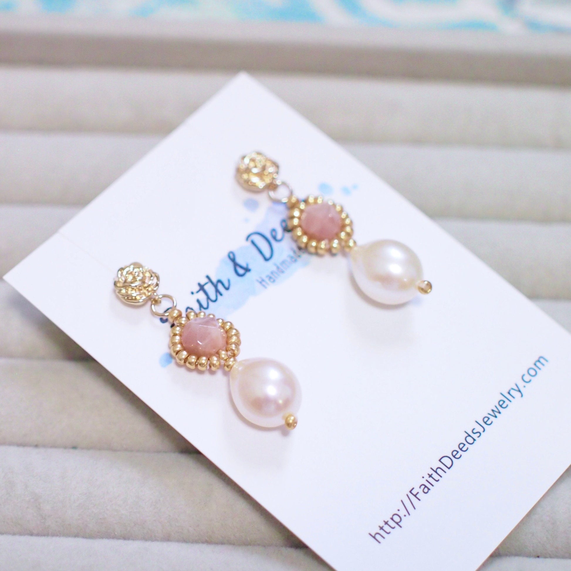 Sunstones x Baroque Pearl Earrings // Beaded // Elegant & Sweet // 14K Gold-filled