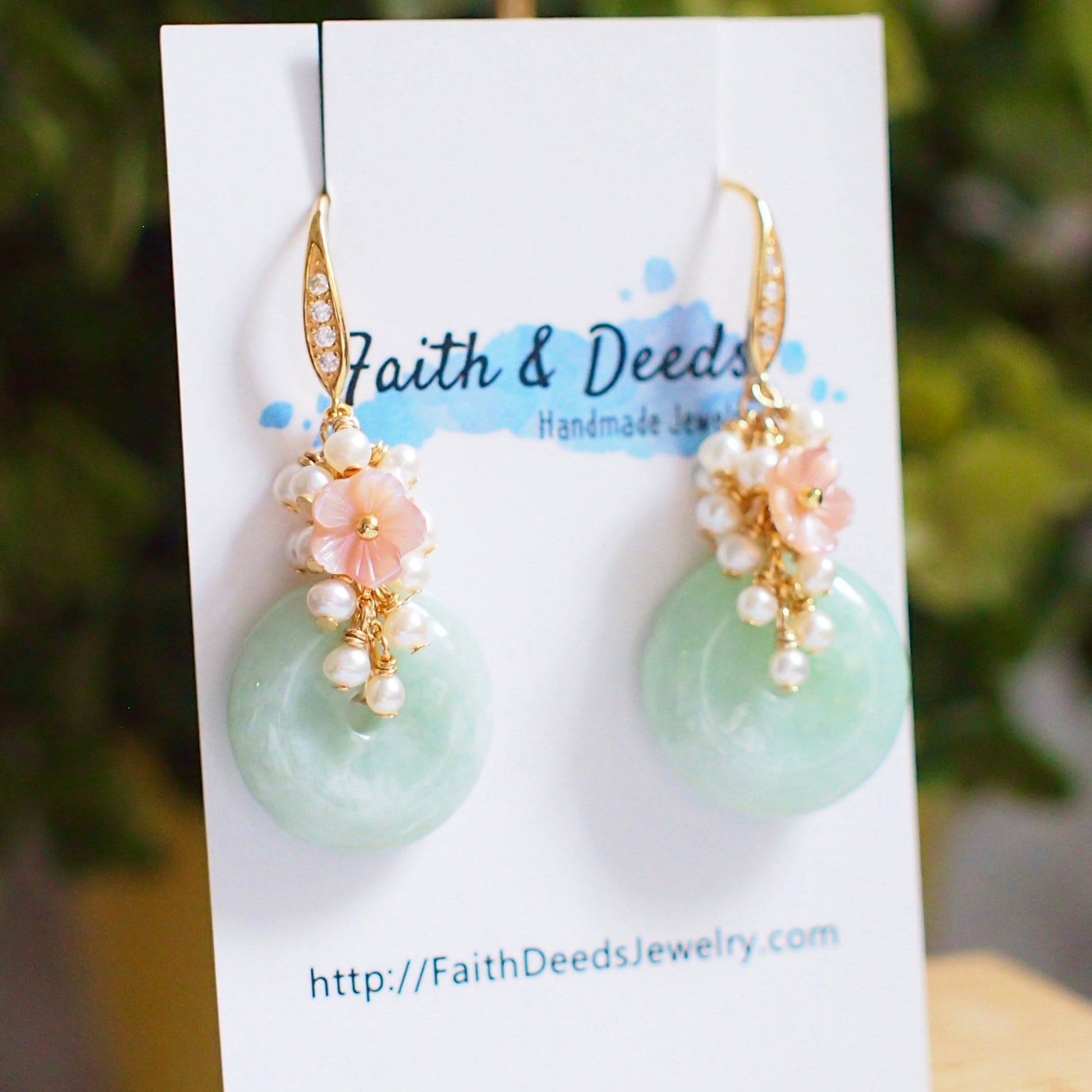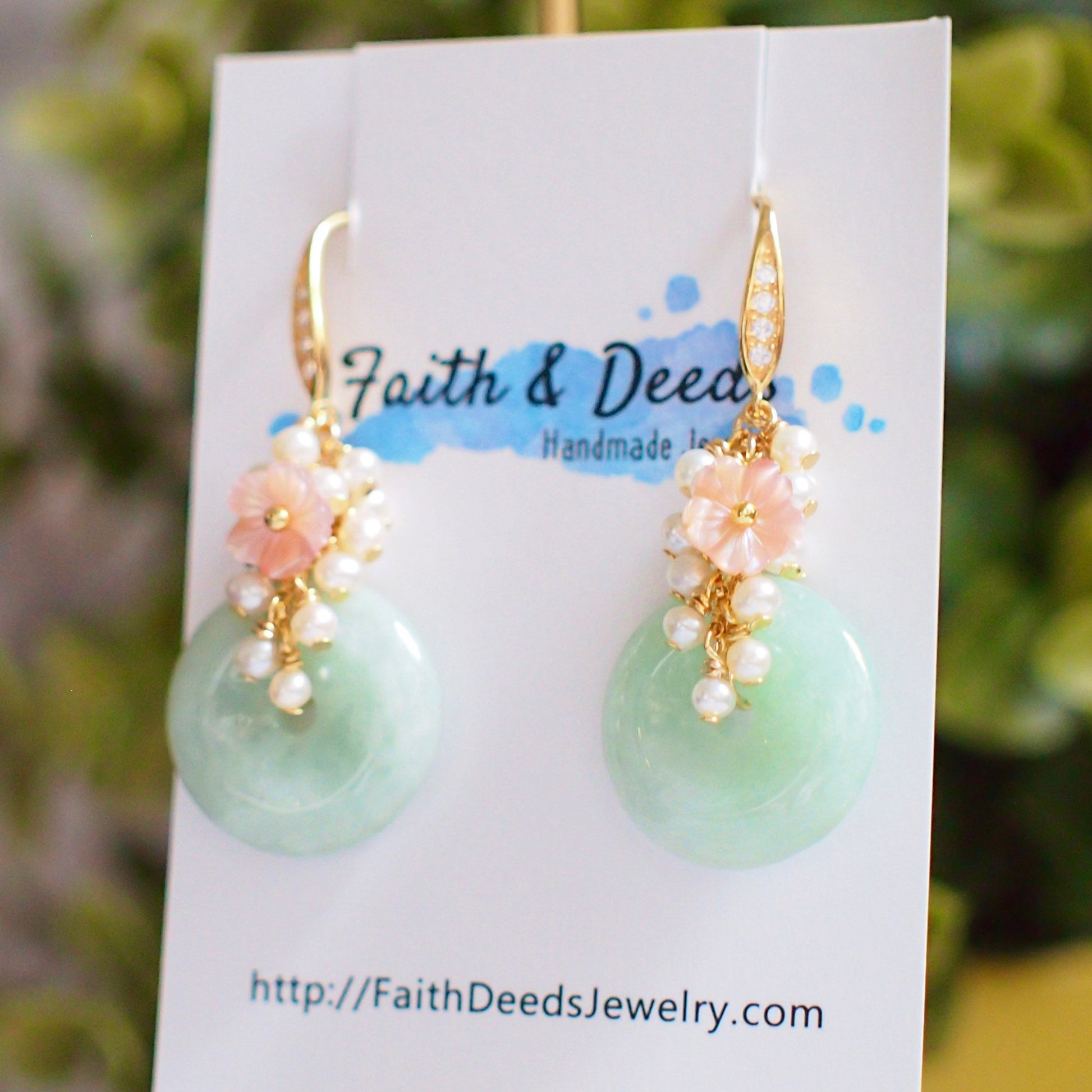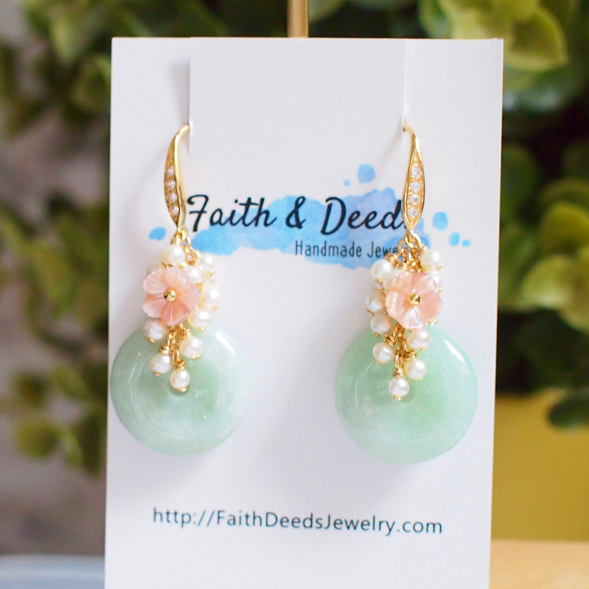 Type A Burmese Jade Donut Earrings // Pearl Cluster // Mother of Pearl Flower // 14K Gold-filled // Romantic & Elegant