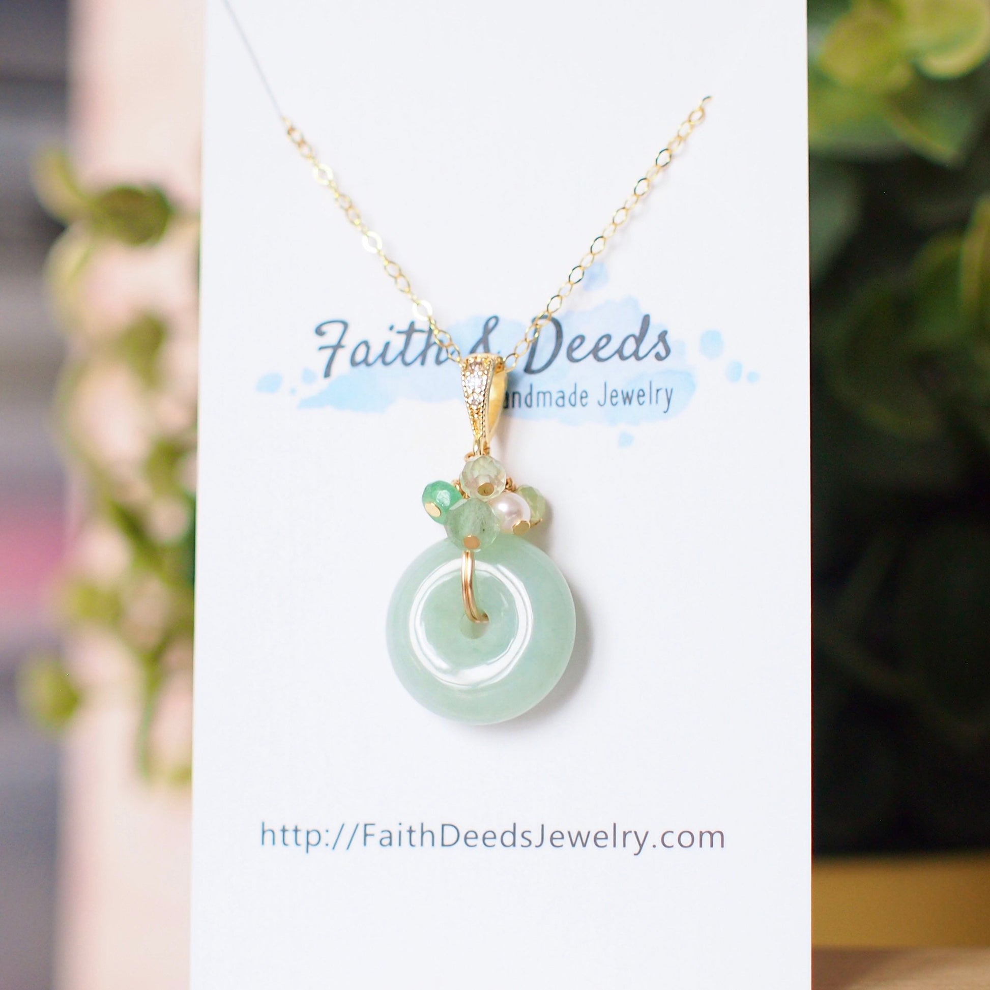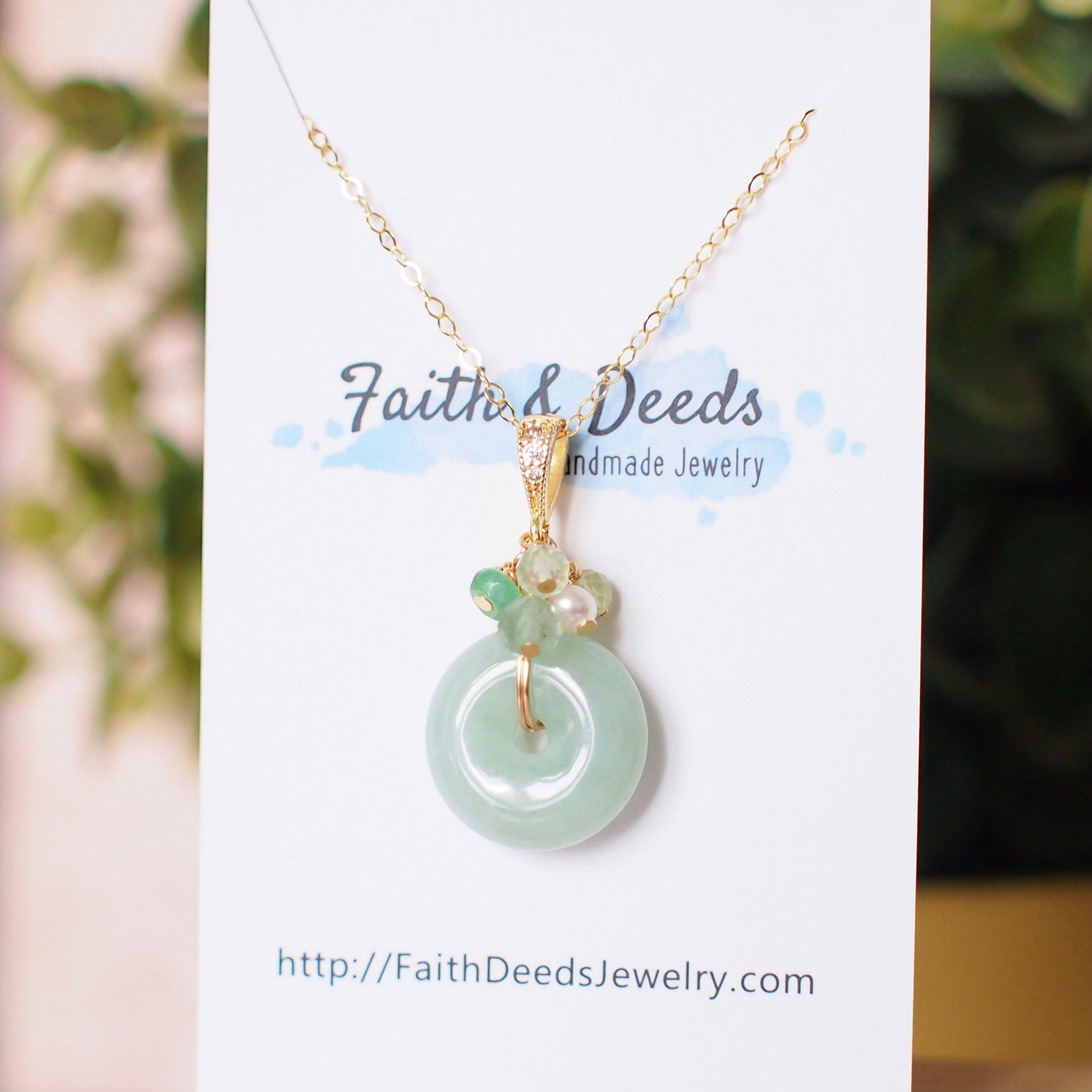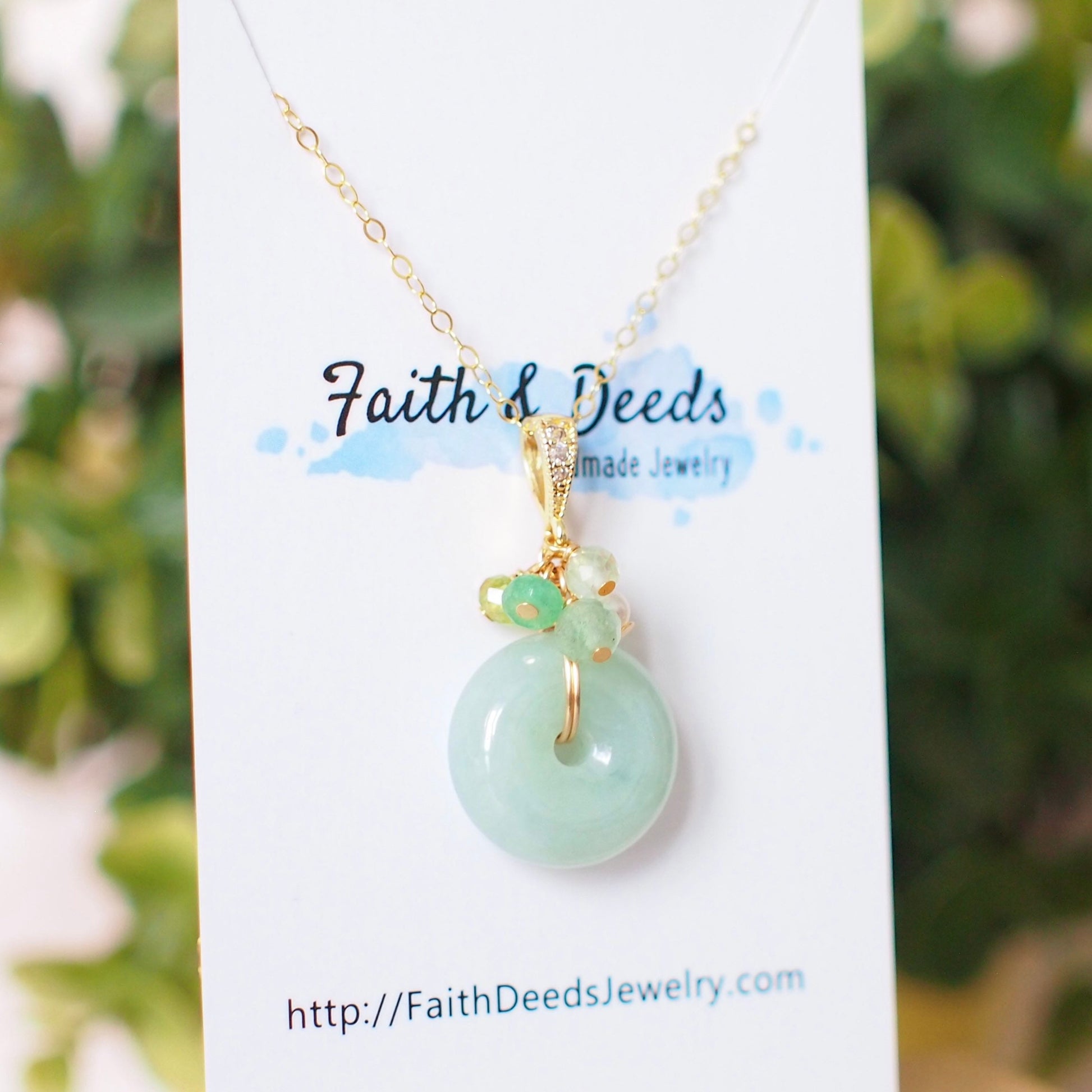Type A Burmese Jade Donut Pendant // Green Gem Cluster // 14K Gold-filled // Lovely & Refreshing