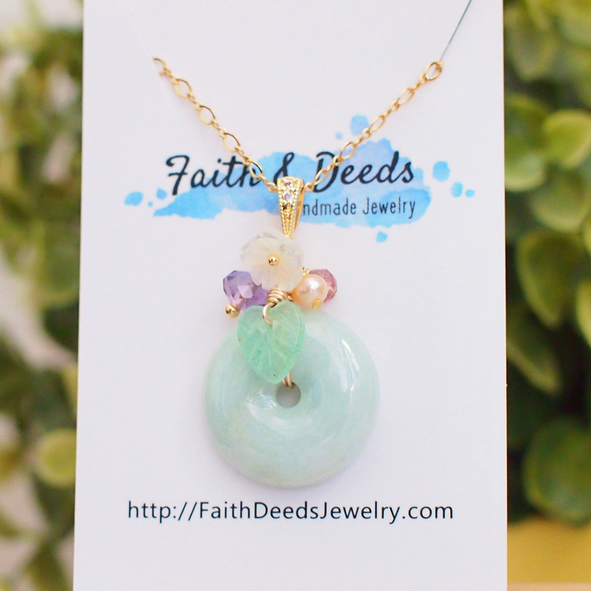 Type A Burmese Jade Donut Pendant // Long Statement Necklace // Lovely & Gorgeous // 14K Gold-filled