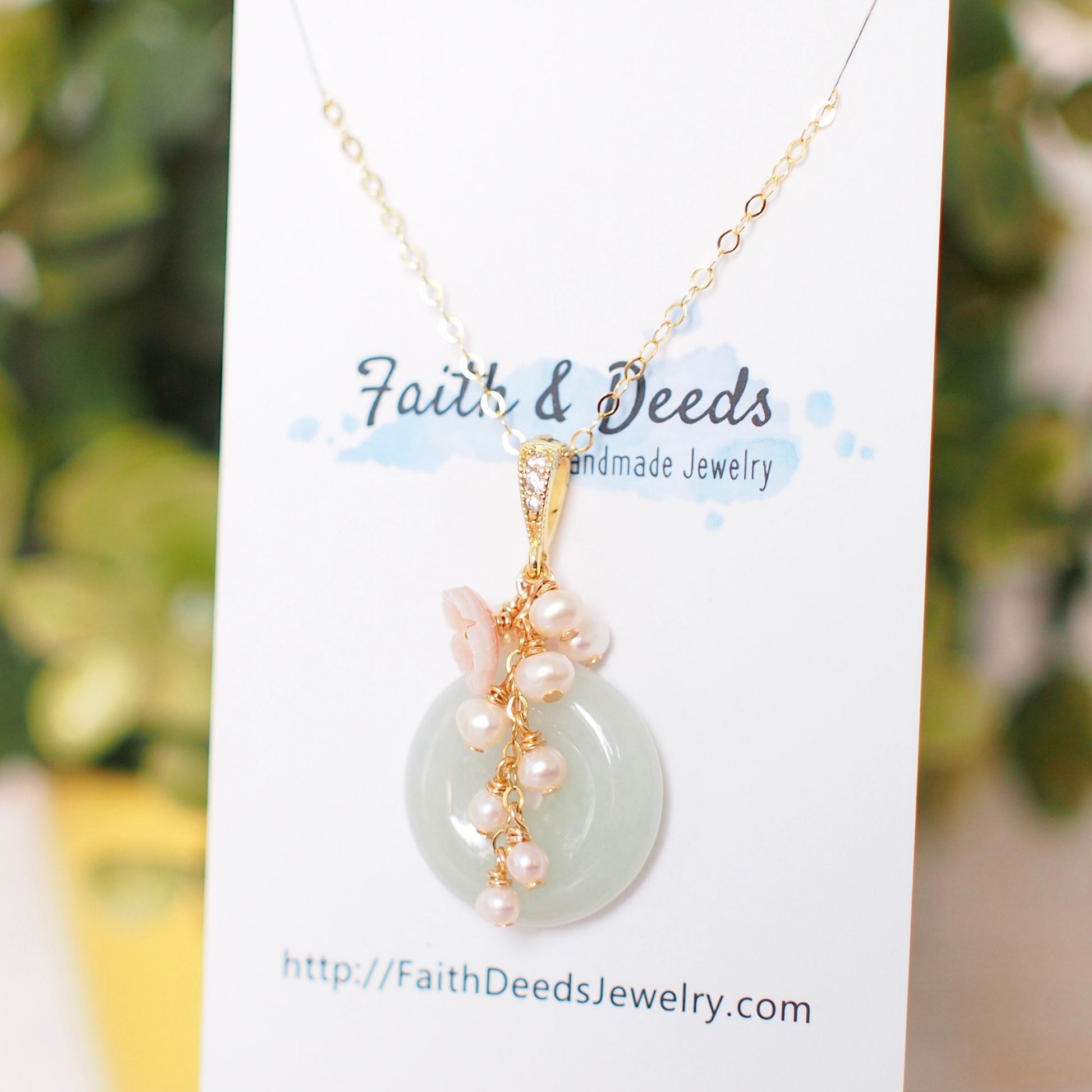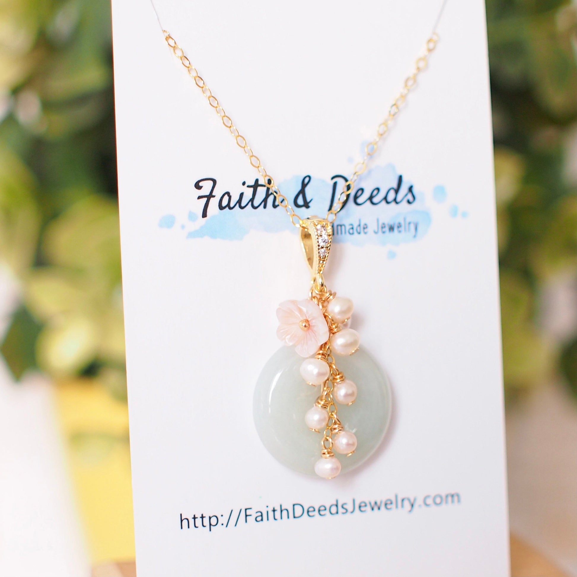 Type A Burmese Jade Donut Pendant // Pearl Cluster // Mother of Pearl Flower // 14K Gold-filled // Romantic & Graceful