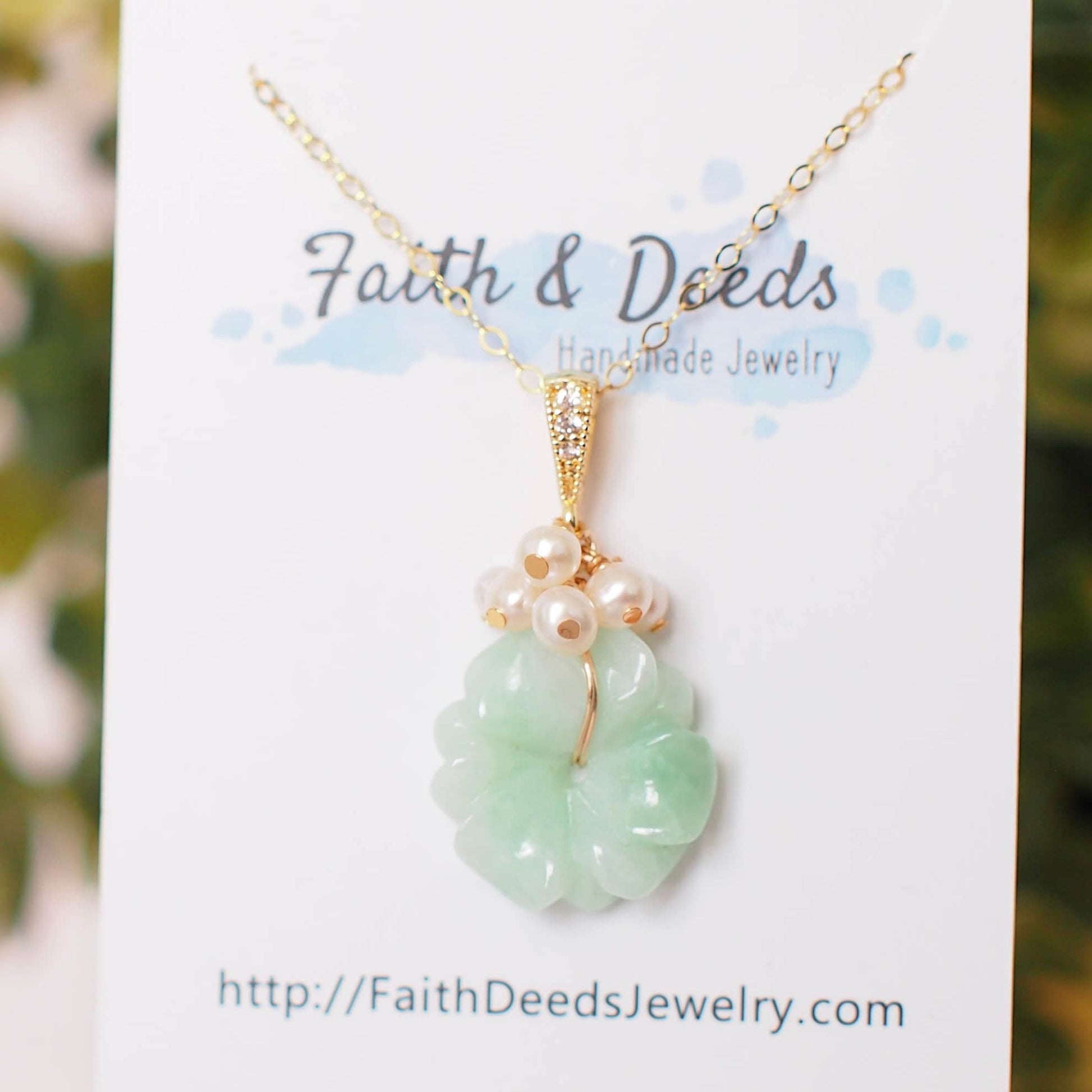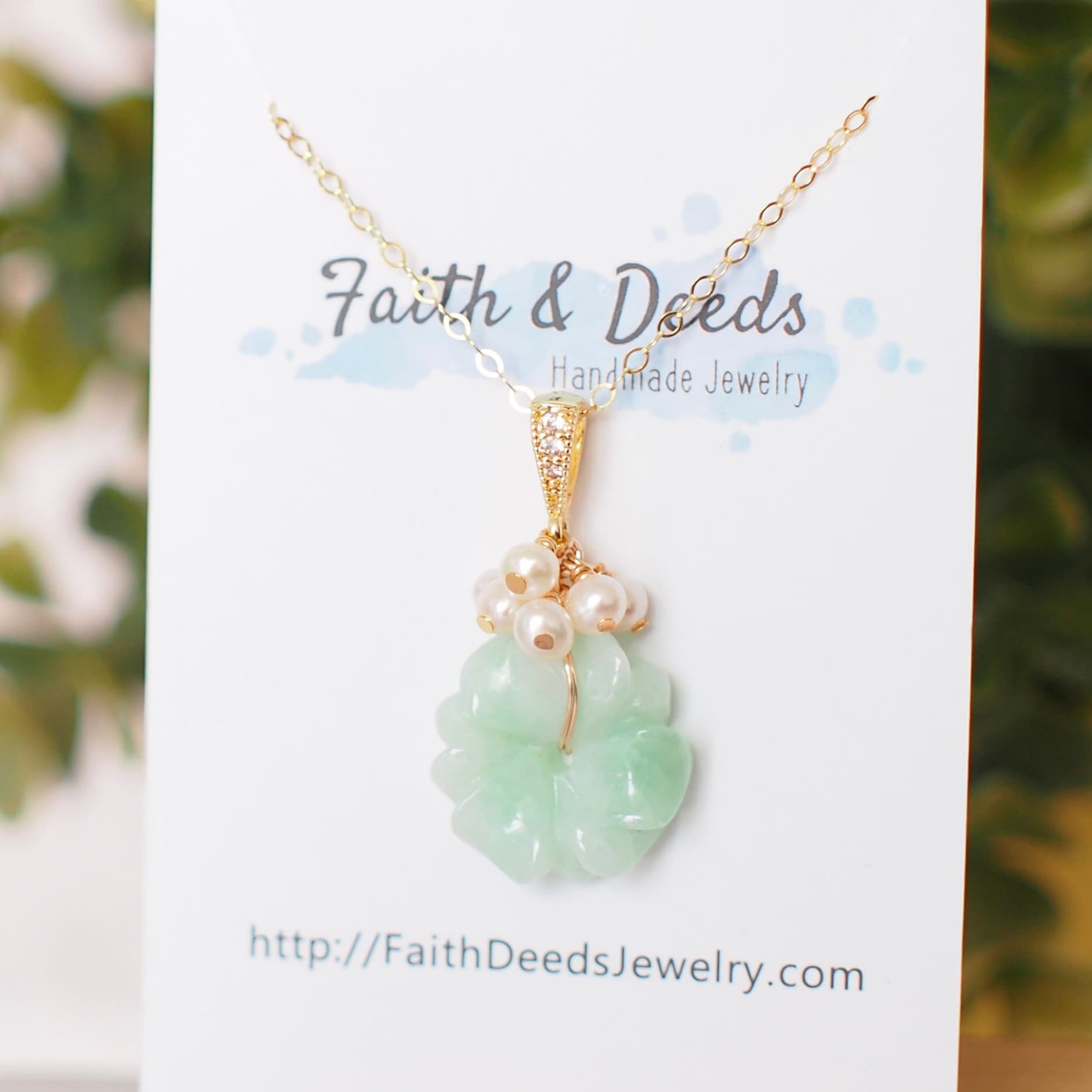Type A Burmese Jade Flower Pendant // Fresh Water Pearl// 14K Gold-filled // Sweet & Classy