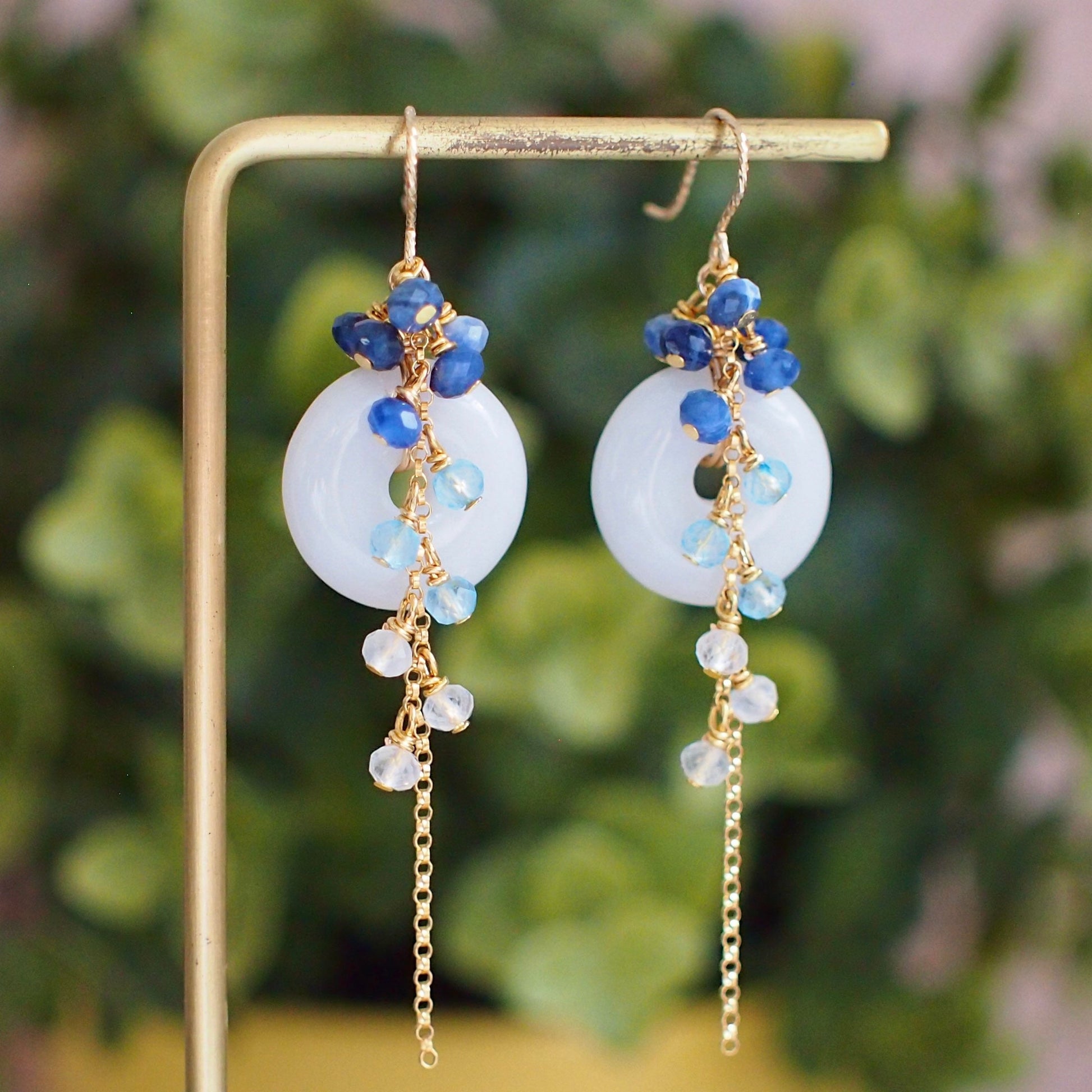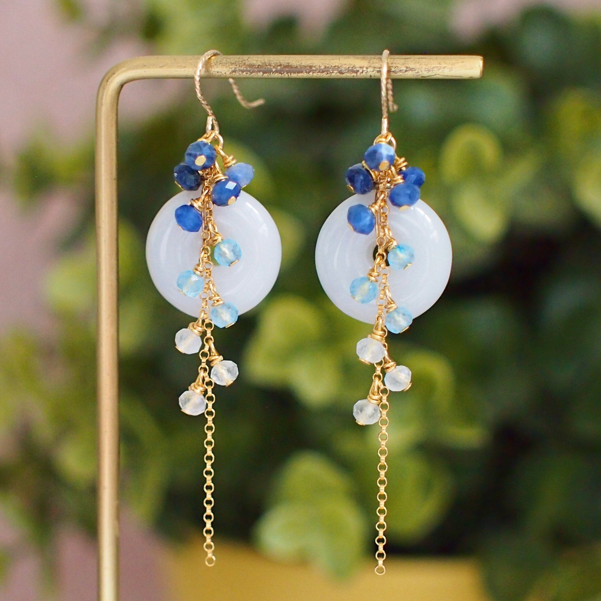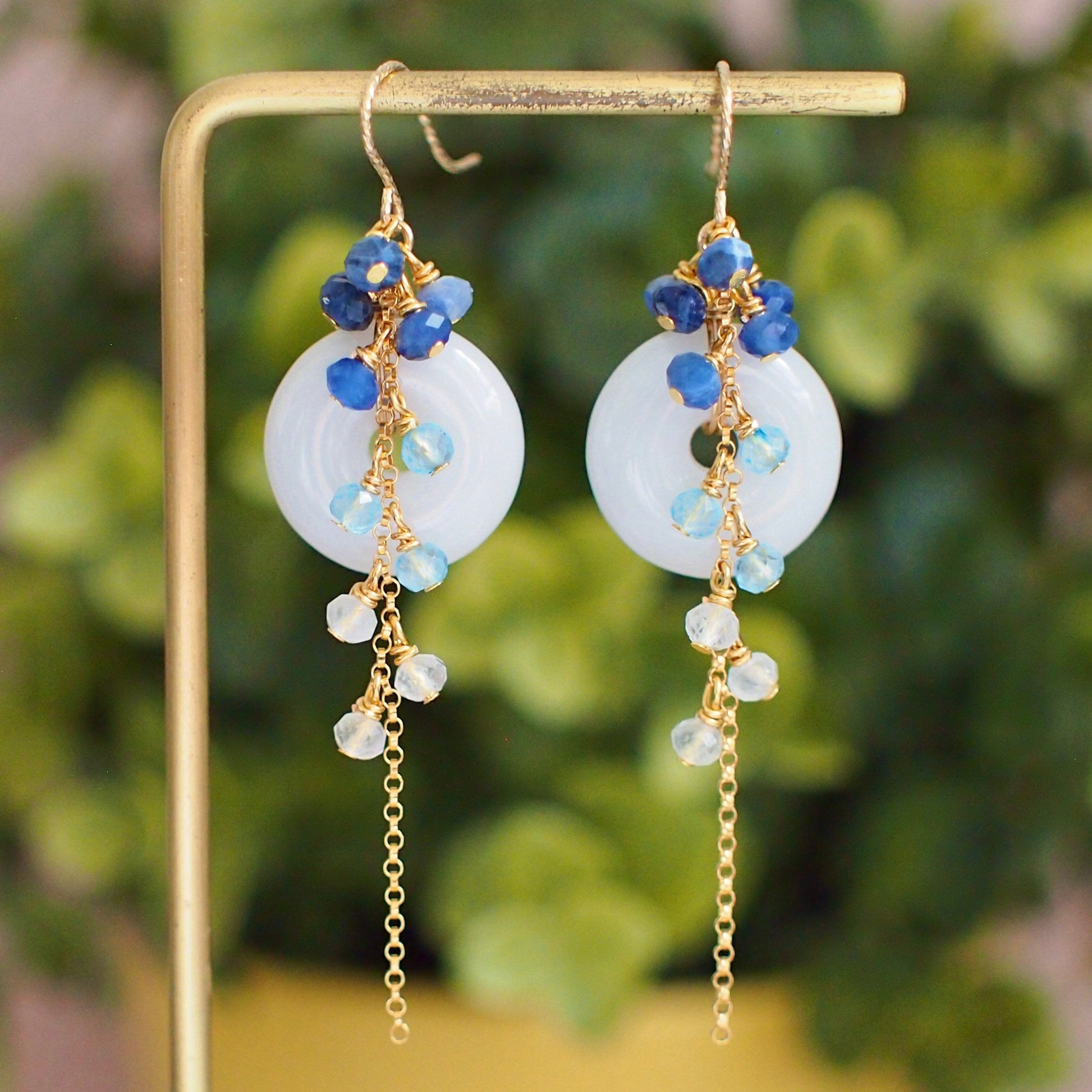 Type A Burmese White Jade Donut Earrings // Long Cascading Gems // Blue Ombre // 14K Gold-filled // Unconventional & Stylish