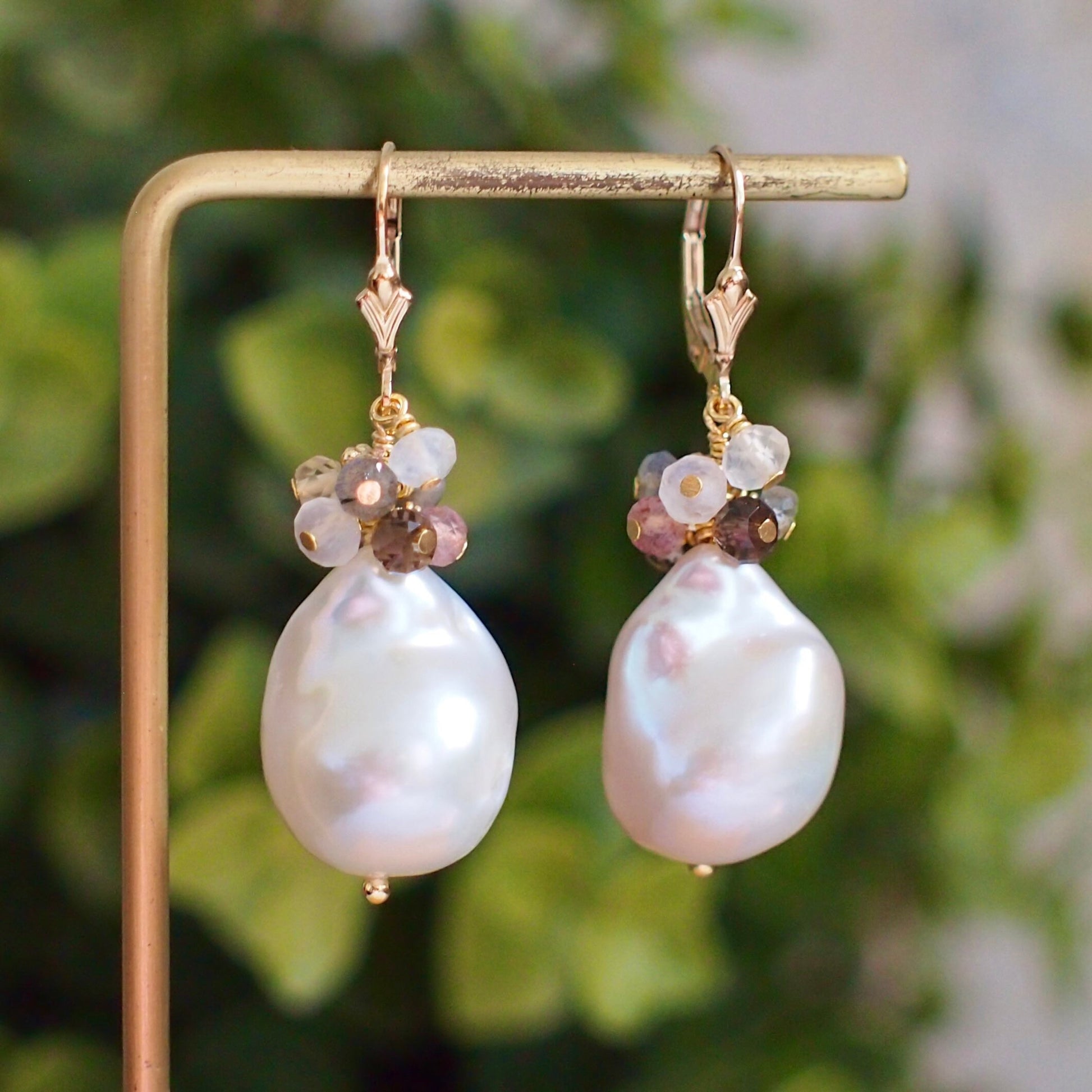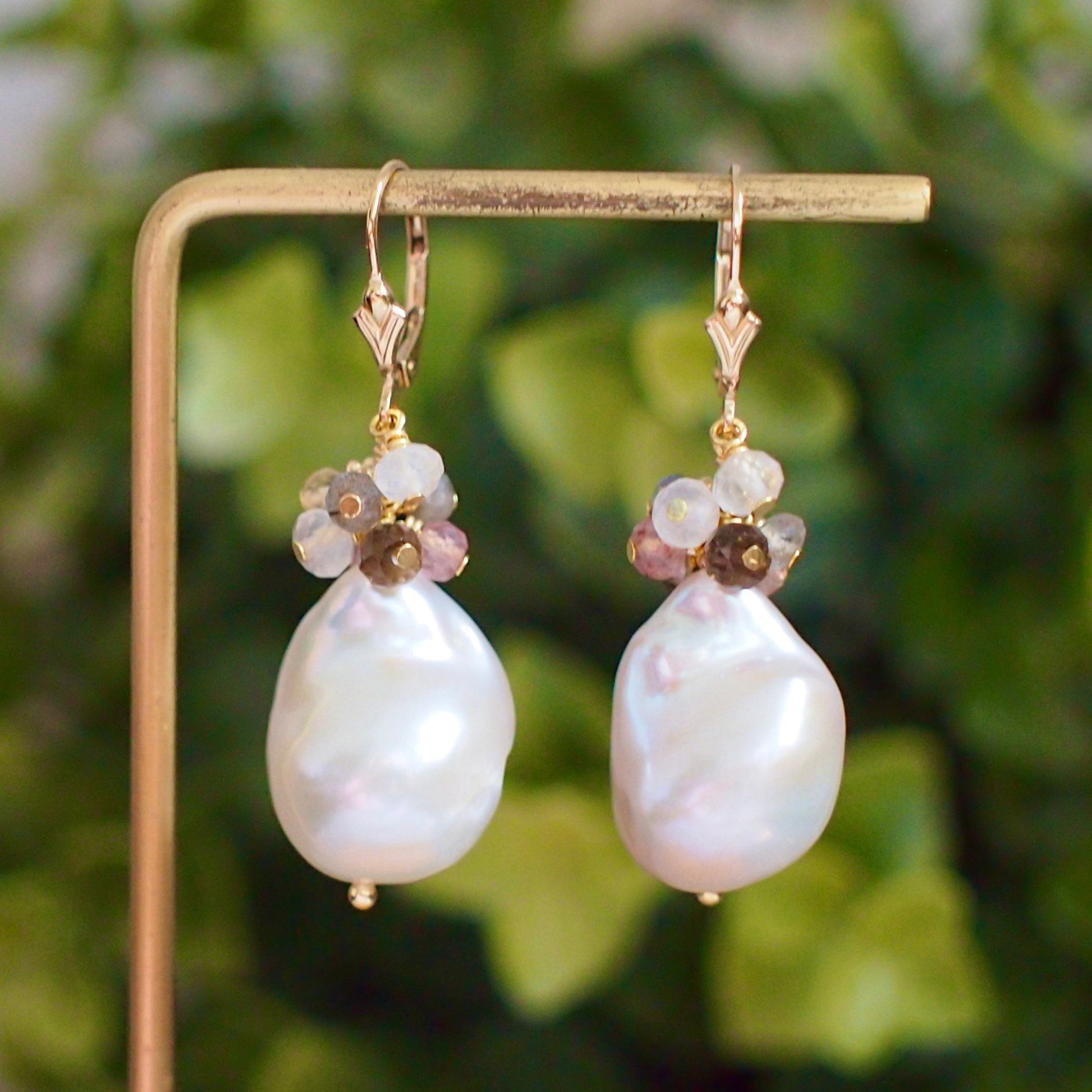 White Baroque Pearl Earrings // Gems Cluster // Flameball Pearls // Understated Look// 14K Gold-filled